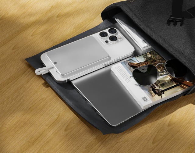 6mm台・101gのカードサイズ設計に、5000mAhの大容量を凝縮。スマートフォンをしっかり1〜1.5回分充電可能。