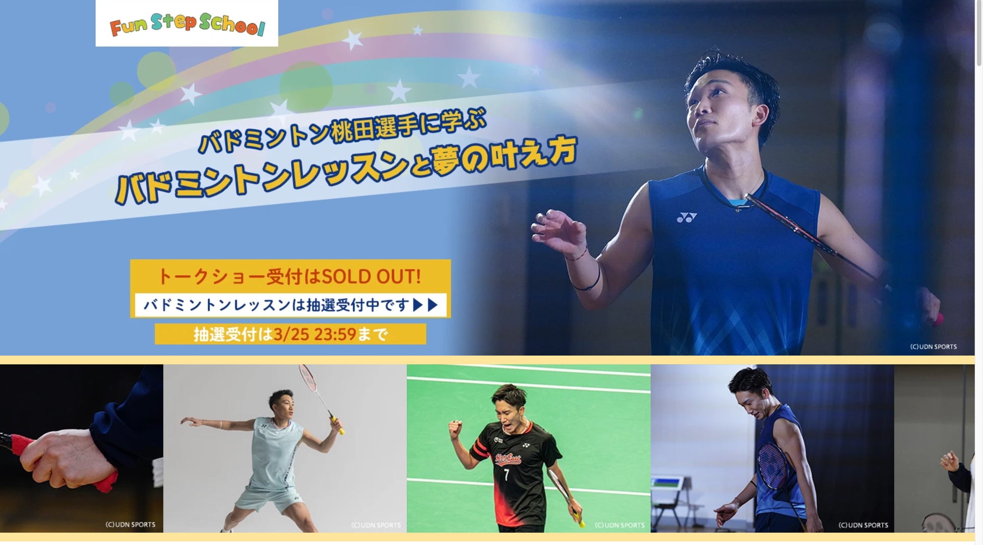 桃田選手のバドミントングループレッスン(対象:経験者)(抽選48名)