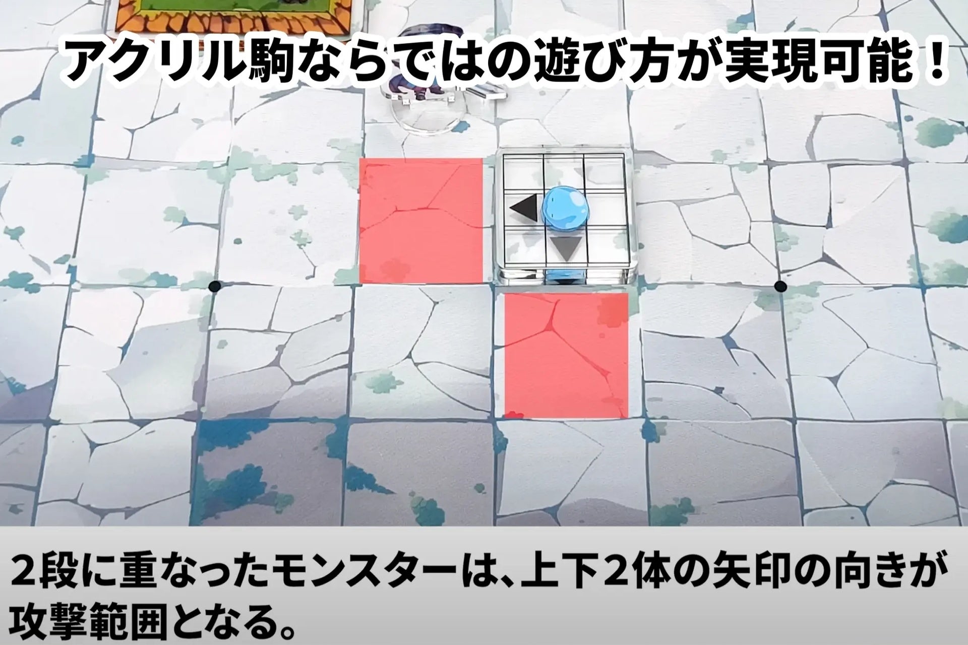 ・駒を重ねることでモンスターが強化される、透明アクリル駒ならではのギミック