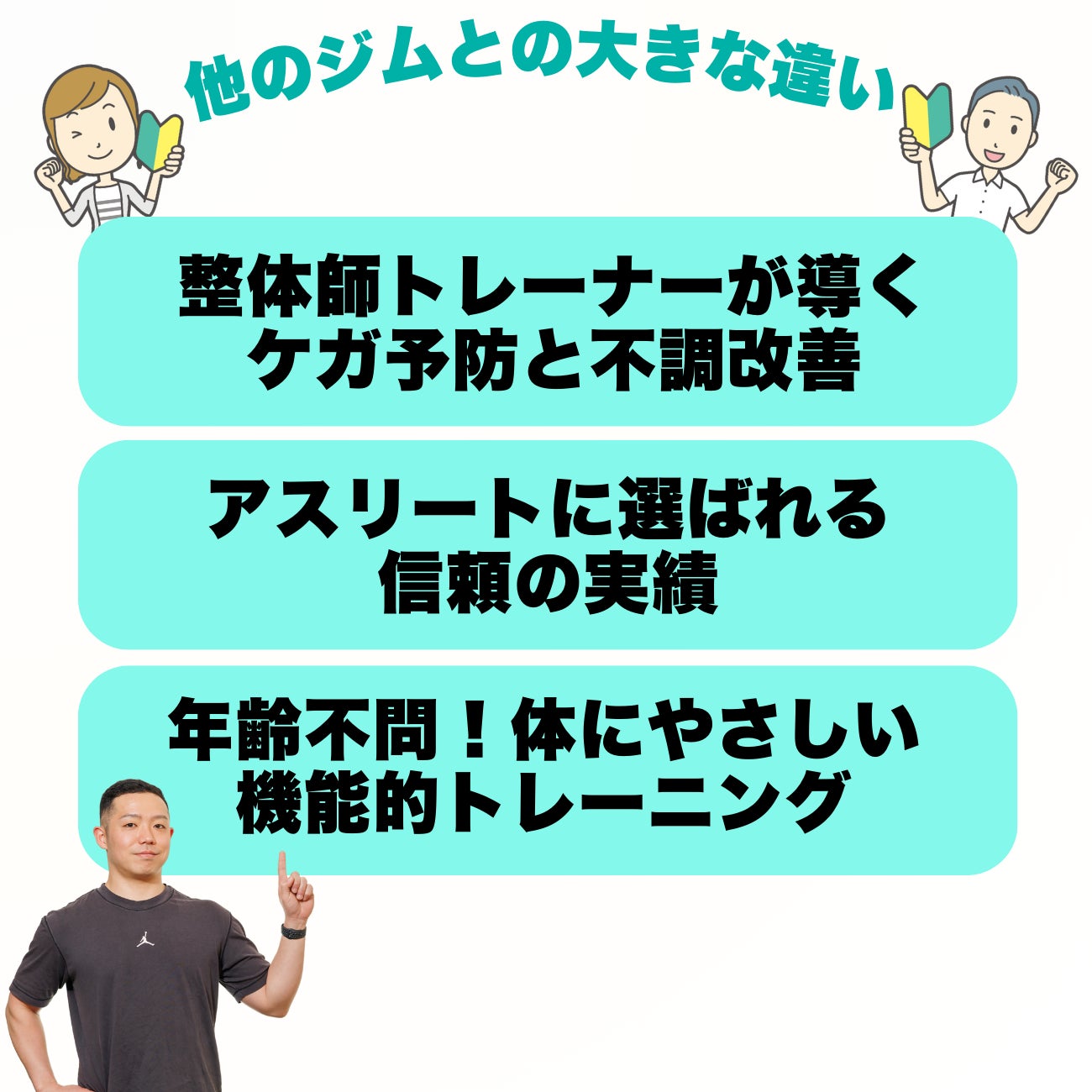 ■ 他ジムとの違い:整体師トレーナーによる安心サポート