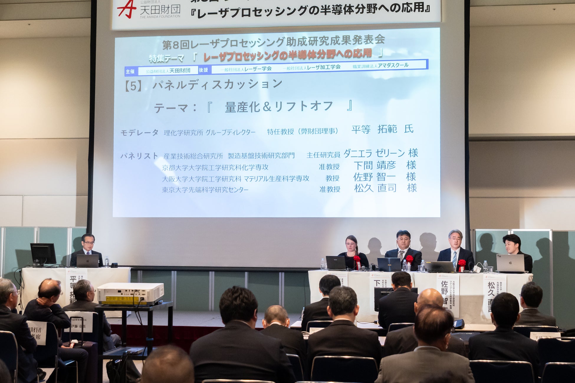 今回のテーマは「レーザプロセッシングの半導体分野への応用」で、過去に当財団が助成した中からテーマに沿った研究成果の発表とパネルディスカッションを実施しました。