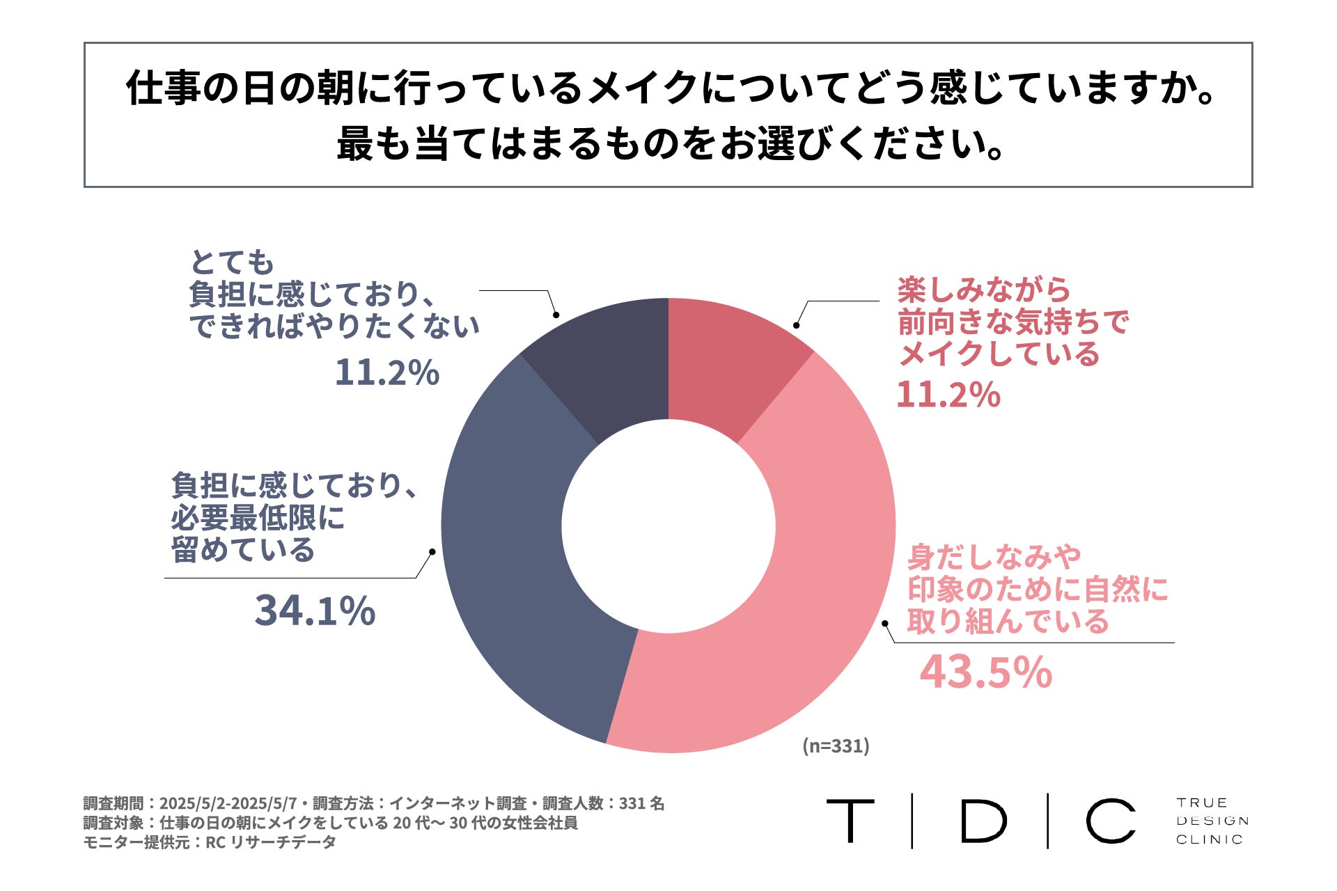 20代~30代の女性会社員の4割強が、仕事の日の朝に行っているメイクを負担に感じている!一般社団法人TRUE DESIGN CLINICが「朝のメイクの負担感と美容施術活用」に関する実態調査を実施!