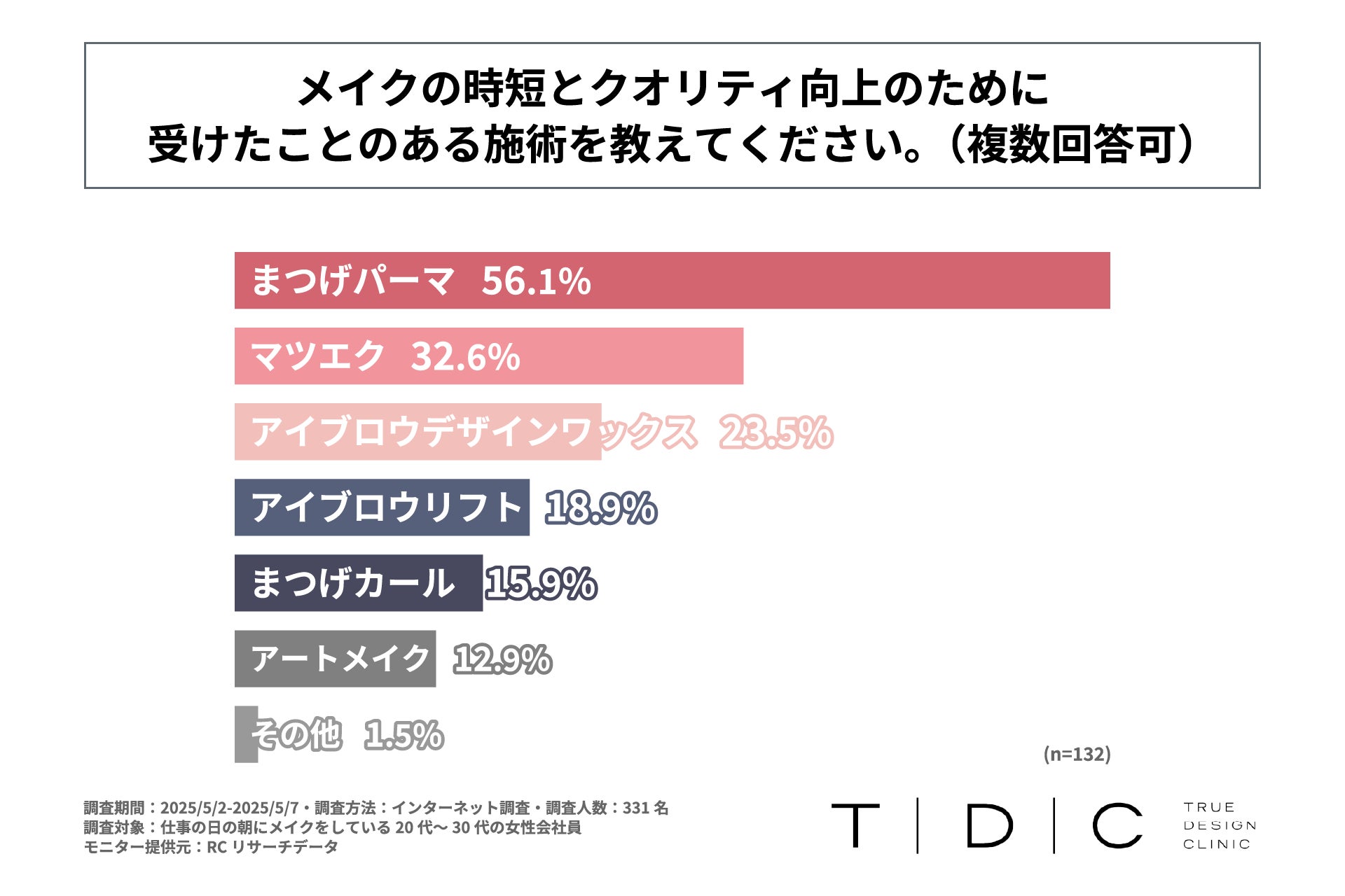 本調査の結果から、20代~30代の女性会社員の4割強が、仕事の日の朝に行っているメイクを負担に感じているということが明らかになりましたが、一般社団法人TRUE DESIGN CLINICは、眉、アイライン、リップなどの「アートメイク」を提供しており、毎日のメイクの時短とクオリティ向上を実現します。また、アートメイク以外にも美容医療の最新メニューを提供しています。アートメイクのこと、お肌やお顔のお悩み、お気軽にご相談ください。