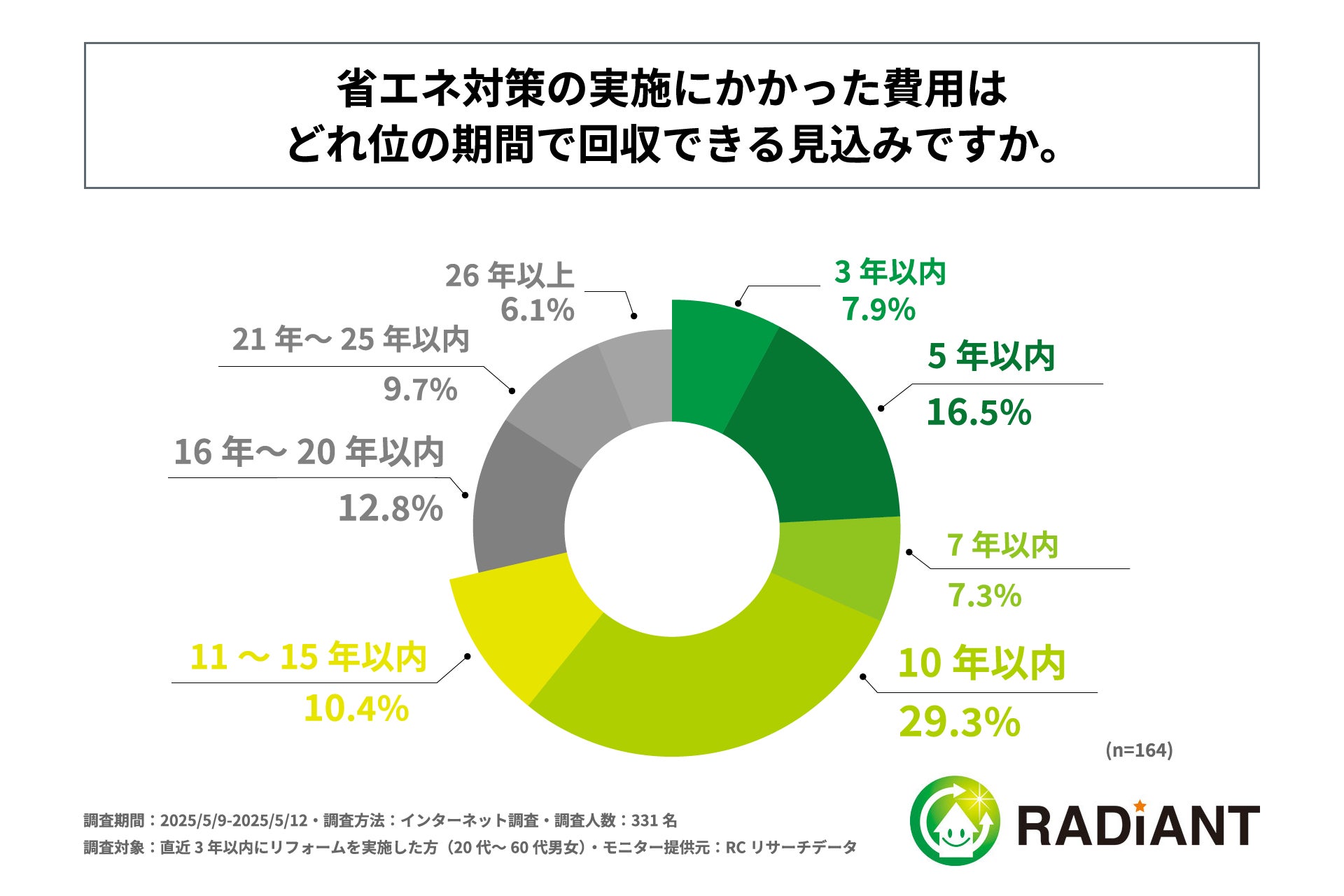 ・6割以上の人が省エネ対策の実施にかかった費用は10年以内に回収できる見込みと考えている