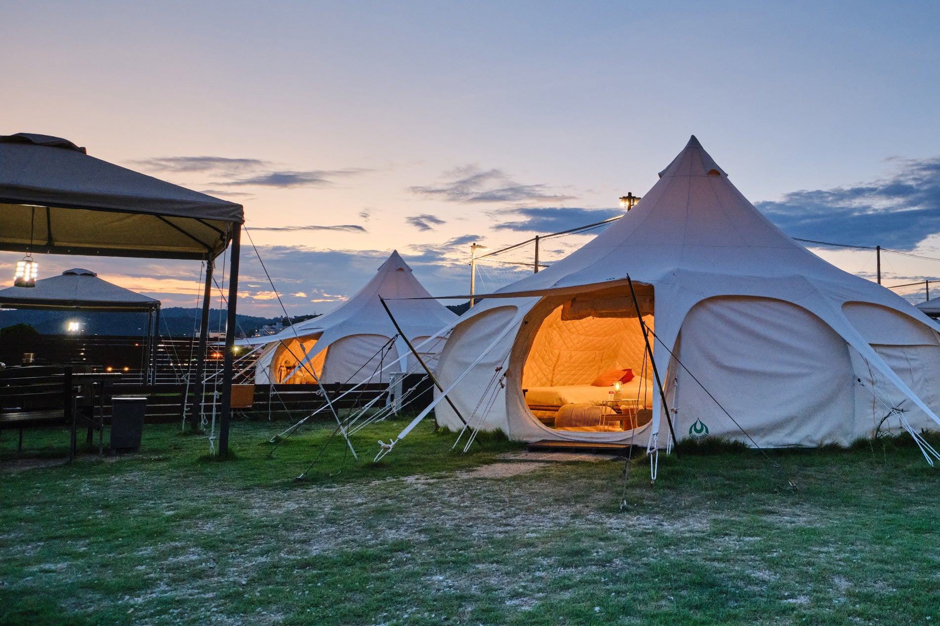 無人島のアクティビティDAYキャンプで思いきり遊んだあとは、たまの湯キャンプ場のグランピングでゆったり過ごそう♪チェックインまたはかチェックアウト日に泊まると、無人島アクティビティDAYキャンプが特別価格に!遊びも休みもどっちも楽しめる、欲ばりプランです。