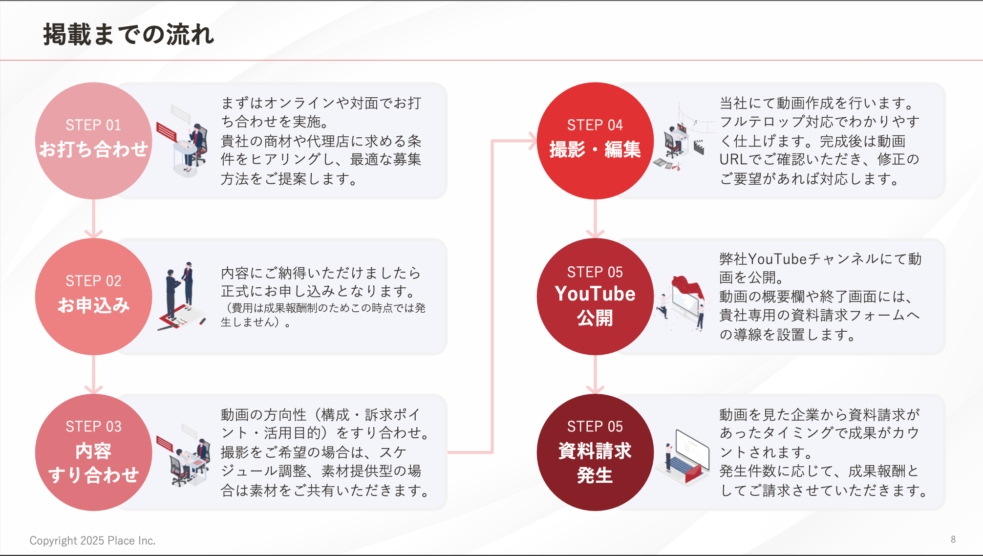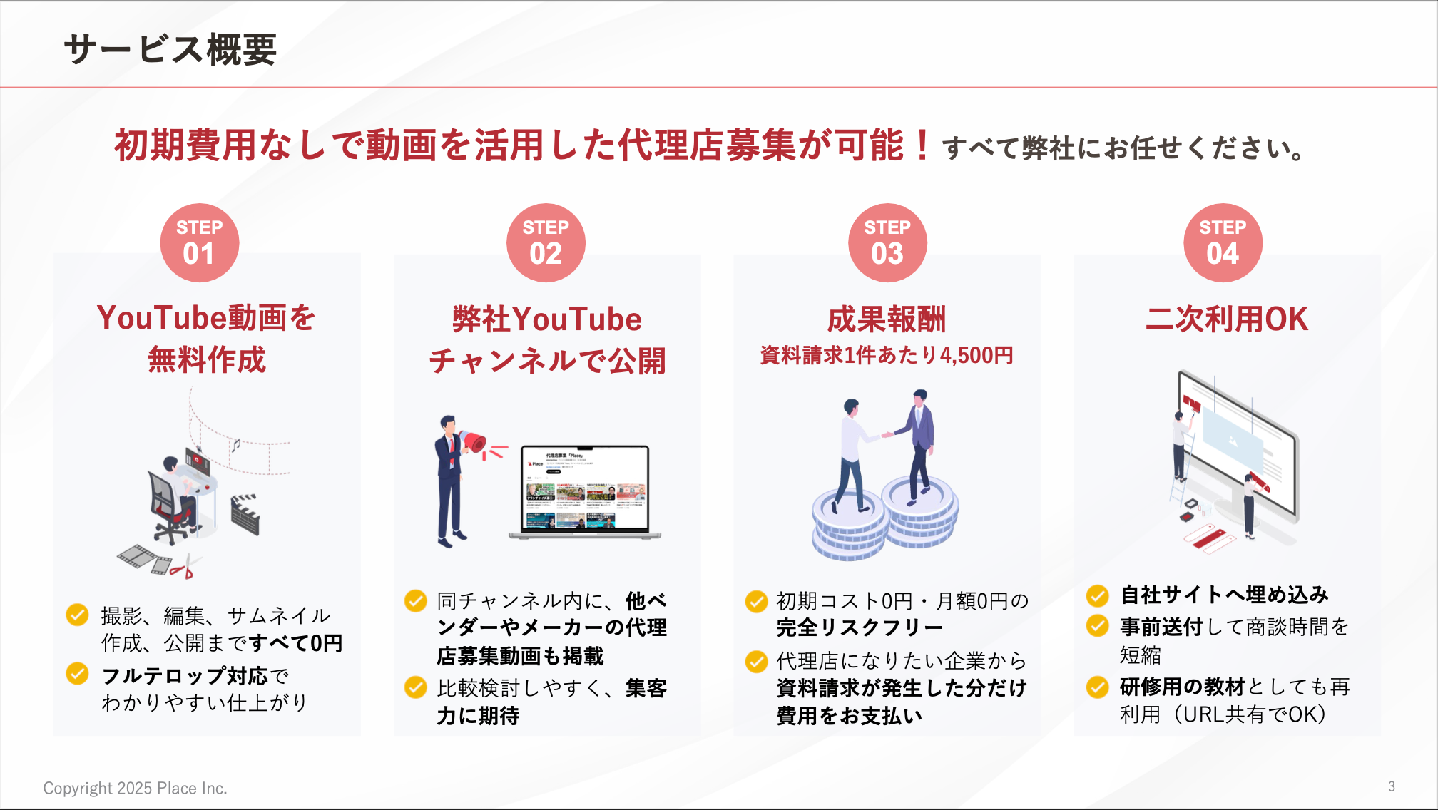 代理店・フランチャイズ募集「Place」の利用方法は以下の通りです。