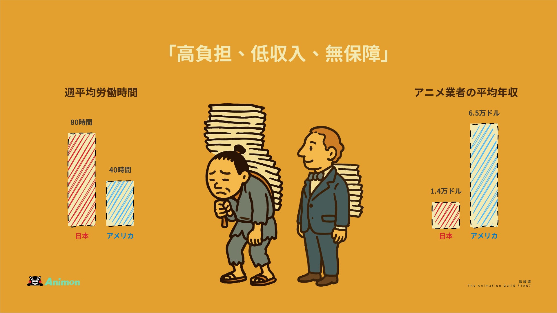 日本のアニメ業界は、世界に誇る文化を生み出し続ける一方で、長時間労働や低賃金、社会保障の未整備といった厳しい労働環境に直面しています。平均年収は約290万円、週労働時間は60~80時間に及び、離職率は37%に達しています。こうした現場の声を受け、「アニメ制作の現実を変えたい」という強い思いから『Animon.ai』は誕生しました。