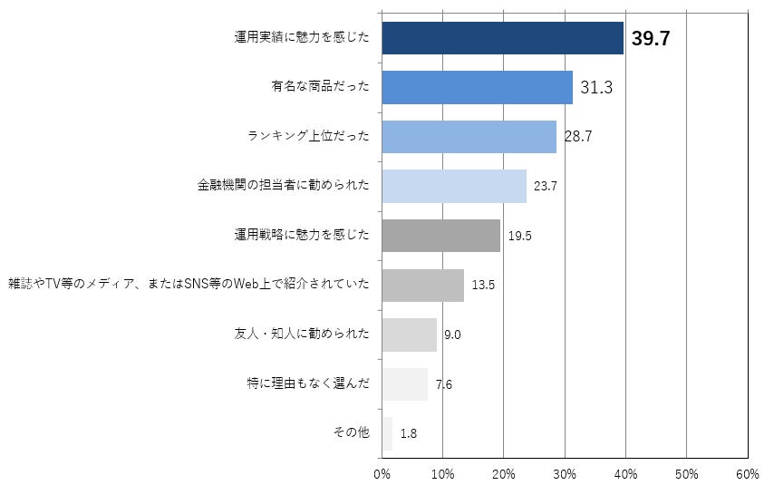 現在購入している(したことがある)投資信託を選んだ理由について、当てはまるものをすべて選んでください。