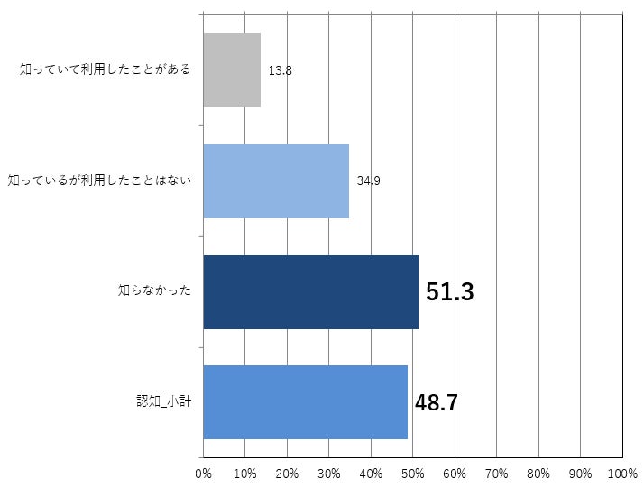 また、投資信託の販売を行う「販売会社」と、投資信託の運用を行う「運用会社」があることを知っていた人は72.5%と、7割を超える人が運用会社の存在について知っているものの、「販売会社」と「運用会社」の役割の違いを「理解している(53.4%)」人や、「販売会社」を介さずに、「運用会社」から投資信託を直接購入できることもあると「知っている(48.7%)」人は約半数にとどまっていることが明らかになりました。