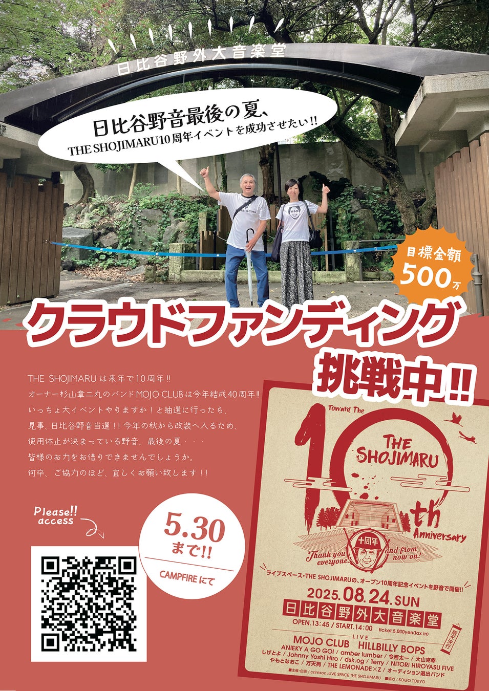 「日比谷野音最後の夏、THE SHOJIMARU10周年イベントを成功させたい!」