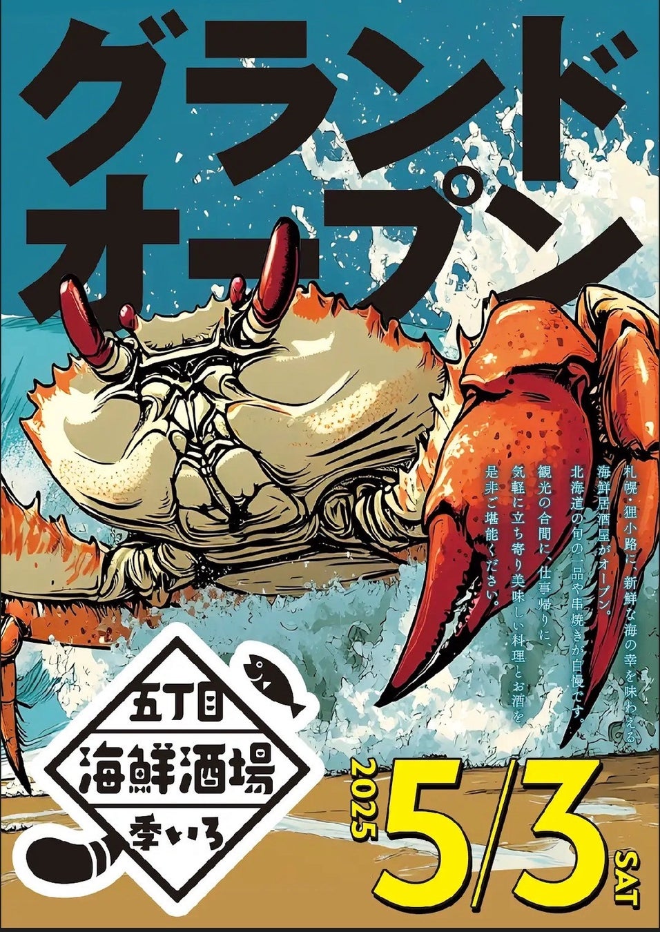 2025年5月3日(土)、札幌の人気観光エリア「狸小路商店街」内に、新たな海鮮居酒屋「五丁目海鮮酒場 季いろ(きいろ)」がグランドオープンします。