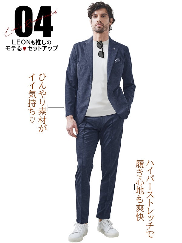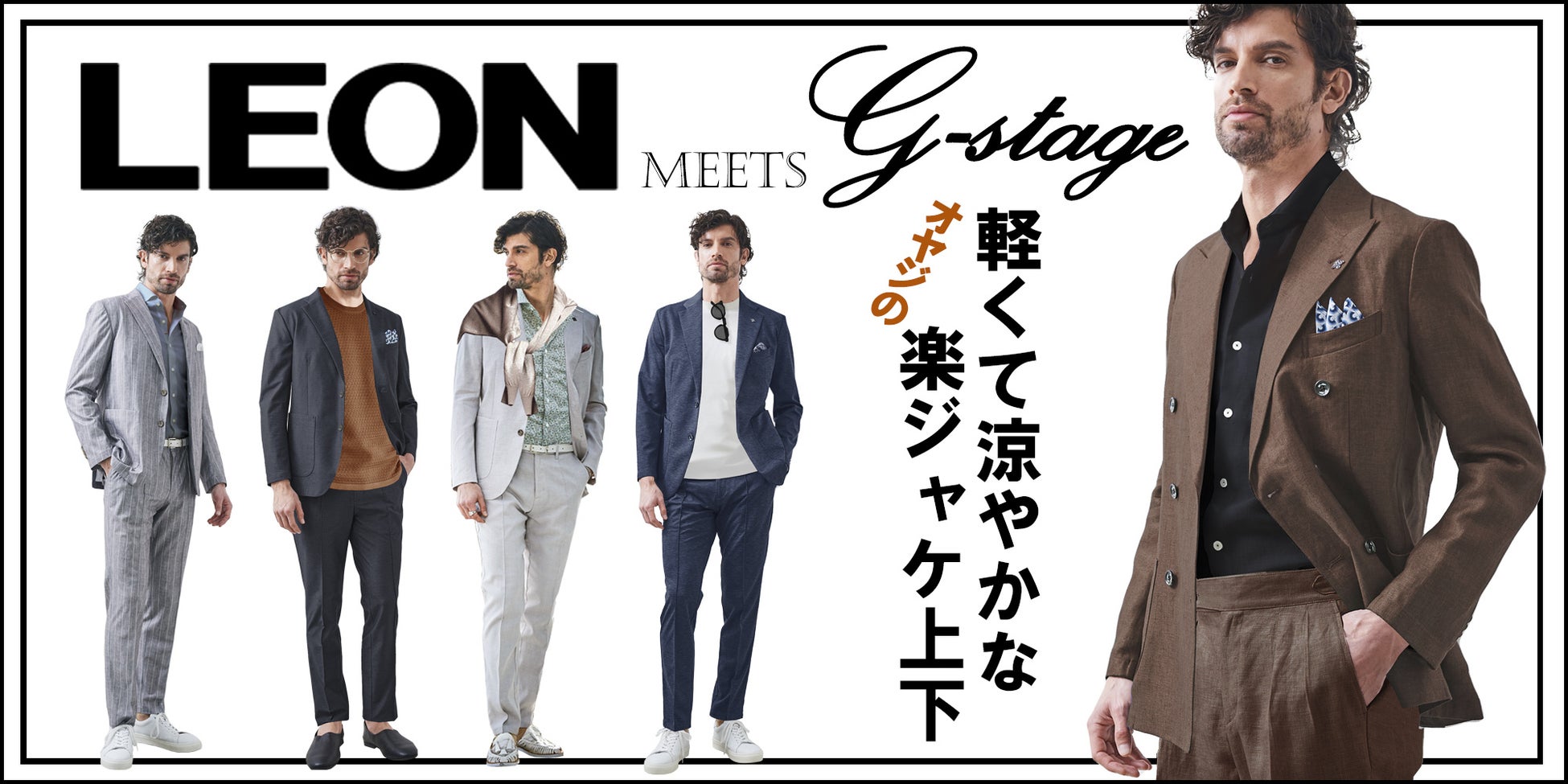 【LEON掲載】G-STAGEの楽ジャケが軽快&艶っぽい。涼やかな大人のセットアップなど5つの"モテる"新作遊び着コーデが掲載開始!