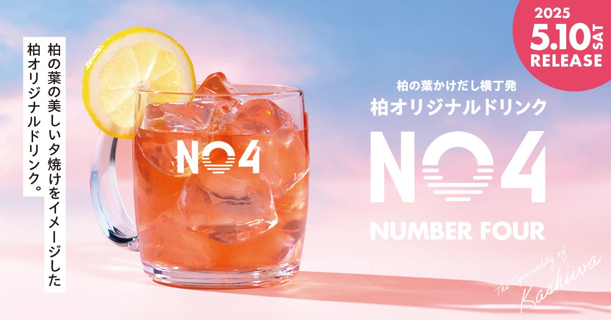 開発したオリジナルドリンクはニッカウヰスキー柏工場で瓶詰めされている「ウィルキンソン ウォッカ」、江戸後期から大正時代まで柏でも製造されていた醤油をアクセントに、柏市民に馴染みのある夕焼けをイメージしたカラーであるアセロラジュースで構成。ドリンク名の「No.4」は柏の葉かけだし横丁がかつての「柏ゴルフ倶楽部」4番ホールだったこと、柏の葉が柏市内で4番目のエリアであることに由来しています。