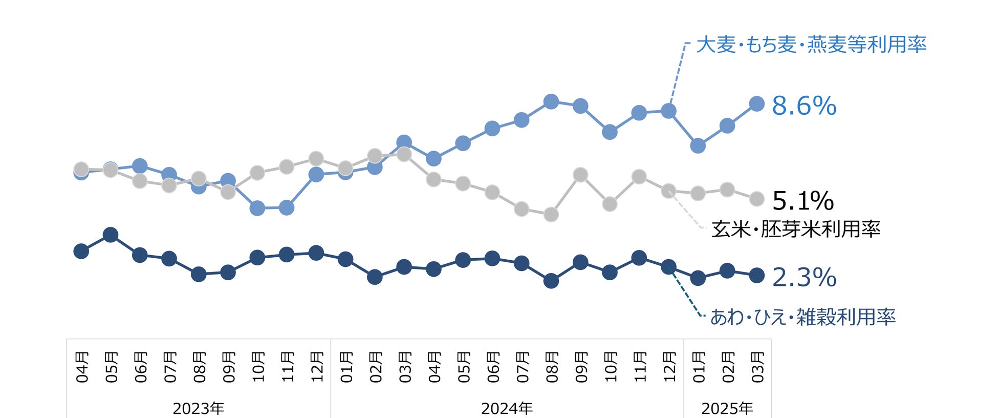 図2.:2024/1~2025/3 における通期在籍世帯(n214)を対象に、1~3 月のお米メニュー出現率を算出。