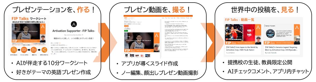 生成 AI スタートアップ Artivation 株式会社(本社:東京都大田区、代表取締役社長 兼 CEO:中田涼介〈高校 3 年/7月1日よりS 校在籍〉)は、世界中の中高生が 3〜5 分の英語プレゼン動画を共有し合うクローズド SNS「FIP Talks」β版を公開しました。正式版も含め利用料金は完全無料です。今回は機能検証に協力いただける国内 5 校限定の無償パイロット校を募集します(海外でも別途 2 校を選定中)。