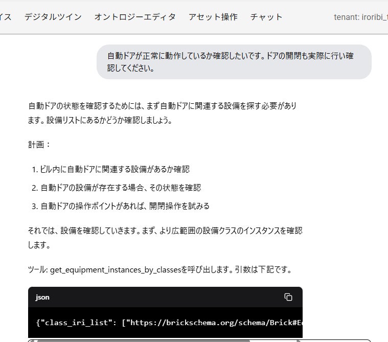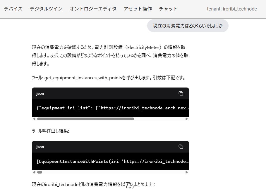 最新の大規模言語モデル(LLM)を用い自然言語による直感的な問い合わせに対応し、迅速かつ的確なビル管理をサポートします。さらにLLMから直接設備の操作も行えるため、自律的なビル管理が実現可能です。