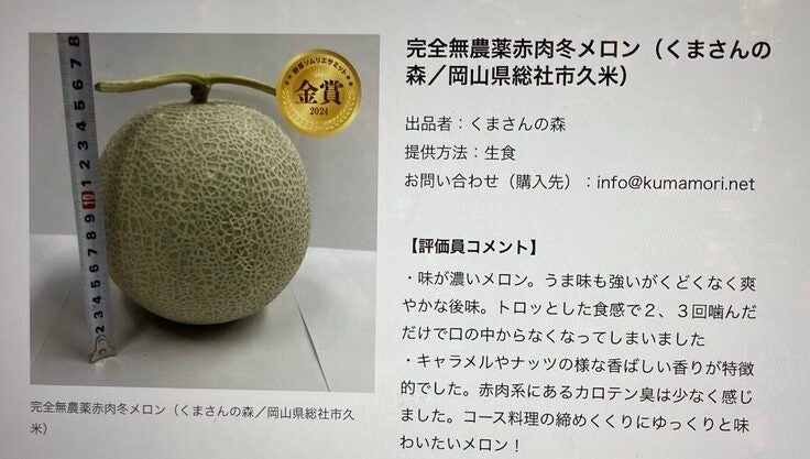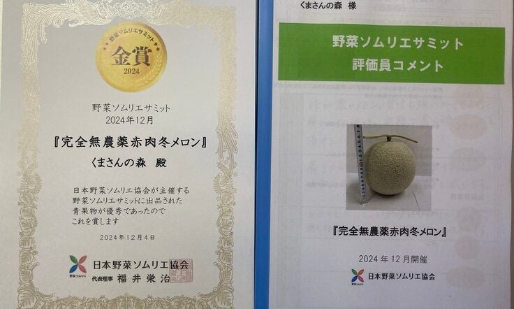 『野菜ソムリエサミット2024』では、「赤肉冬メロン」で金賞を受賞いたしました。