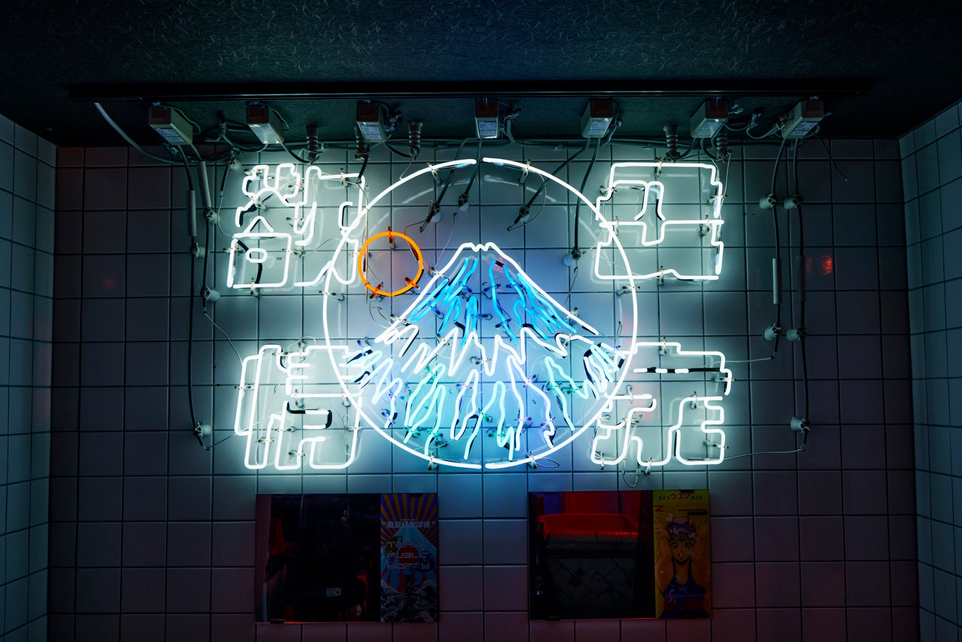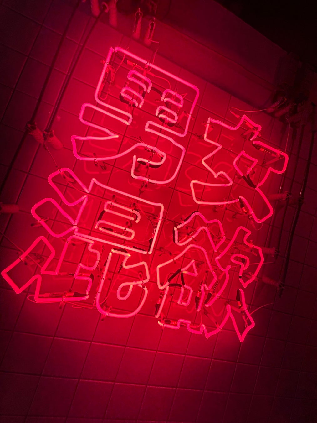 お店の象徴は、Made in TokyoのLEDではない本格派巨大ネオン管というこだわりよう。