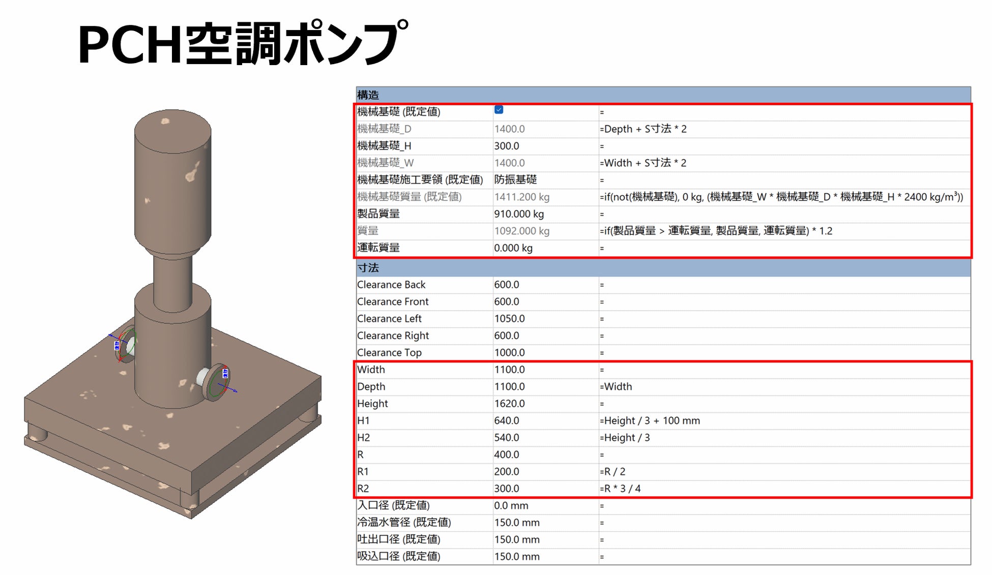 また機械基礎の位置やサイズを制御し、質量を自動計算できるようにする。
