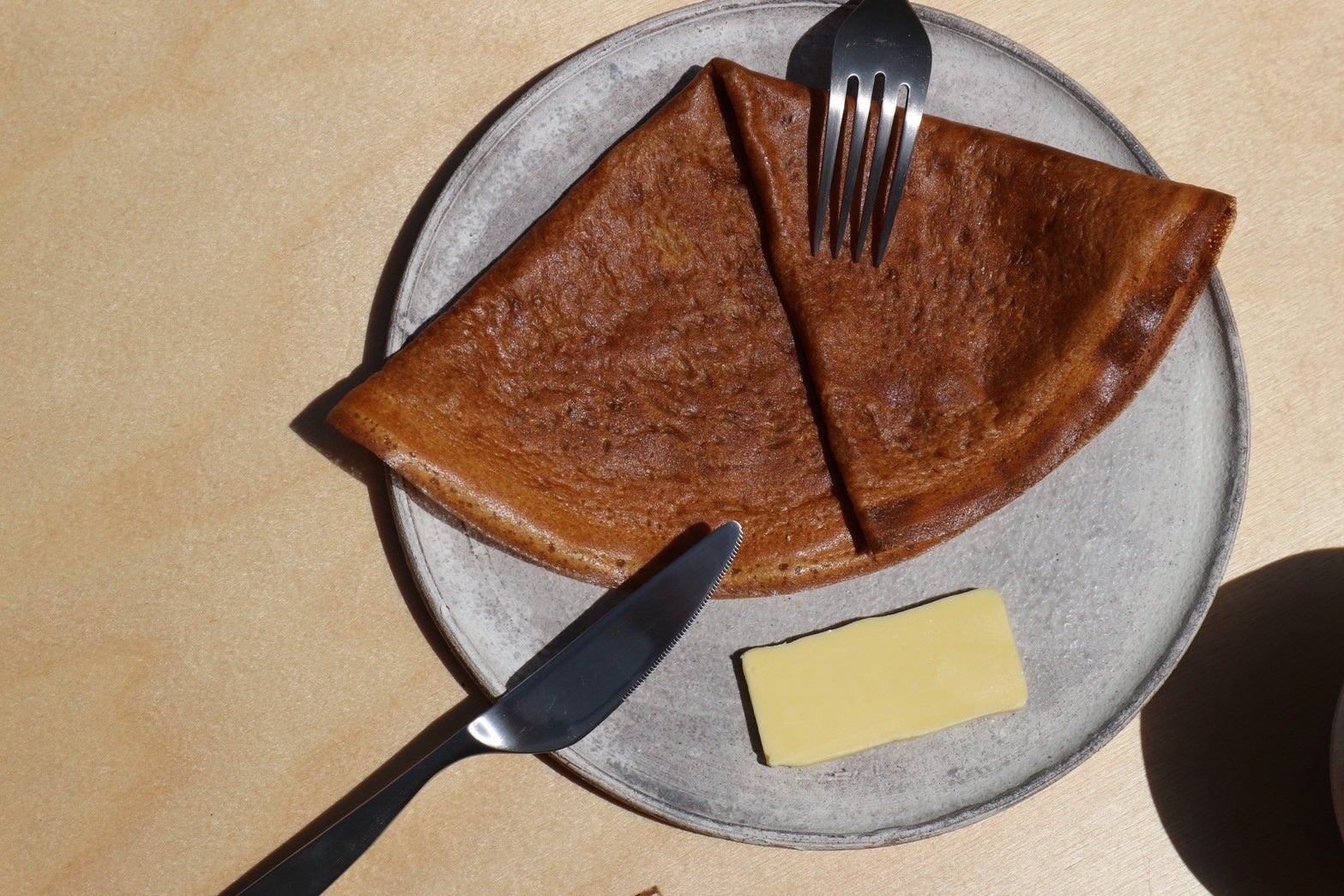 ØCのクレープは、目黒のミシュラン星付きレストラン『KABI』の立ち上げメンバーを経て、その後デンマークに移住、NOMAから独立したソムリエの店でシェフをしていた田井將貴がコペンハーゲンの自宅で作っていたシンプルなシュガーバターのクレープが元になっています。その配合で焼いたクレープ抜群に美味しいとのことで、クレープ推しのカフェを始めてみようという雑談をきっかけにスタートしました。彼は昨夏コペンハーゲンより帰国し、北沢のお店でシェフとして腕をふるい、季節ごとの素材を活かしたディナーコースを提供しています。