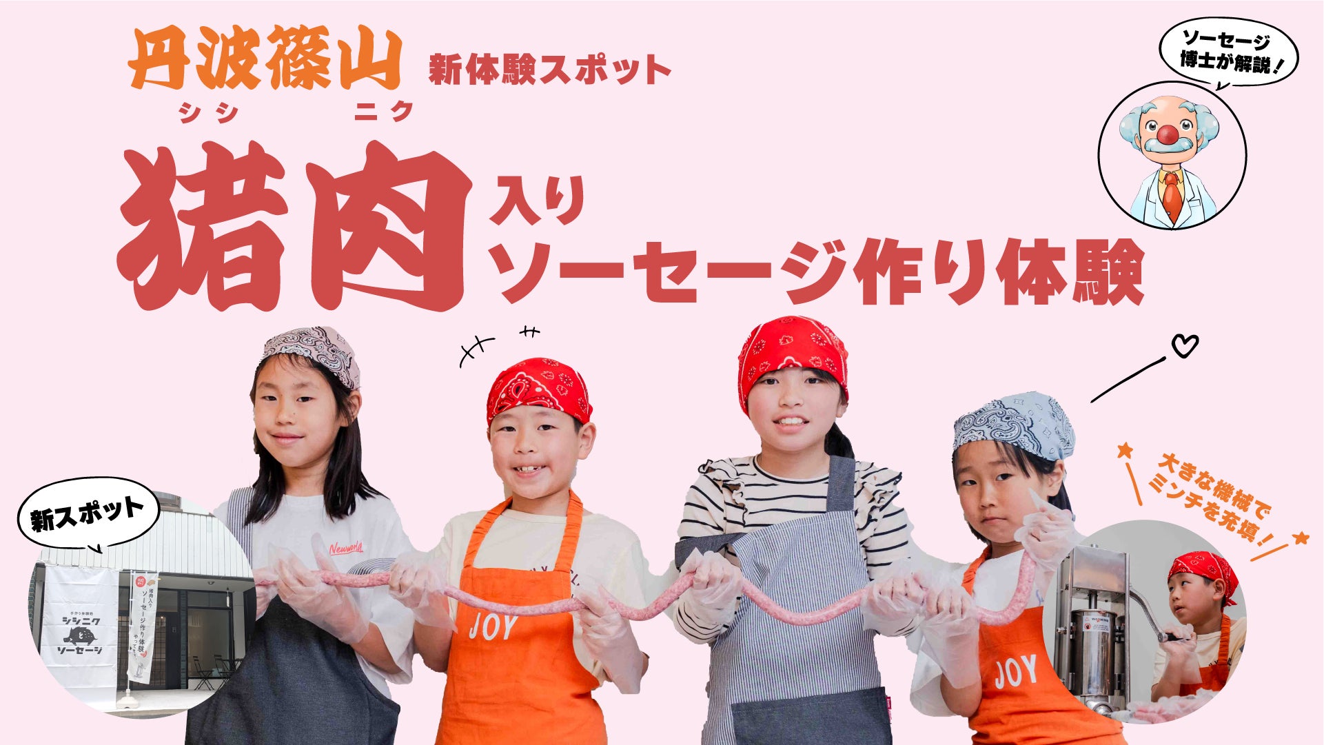 丹波篠山市魚屋町に、猪肉入りソーセージを“作って・食べて・学べる”体験型店舗 「手作り体験処 シシニクとソーセージ」 が誕生します。