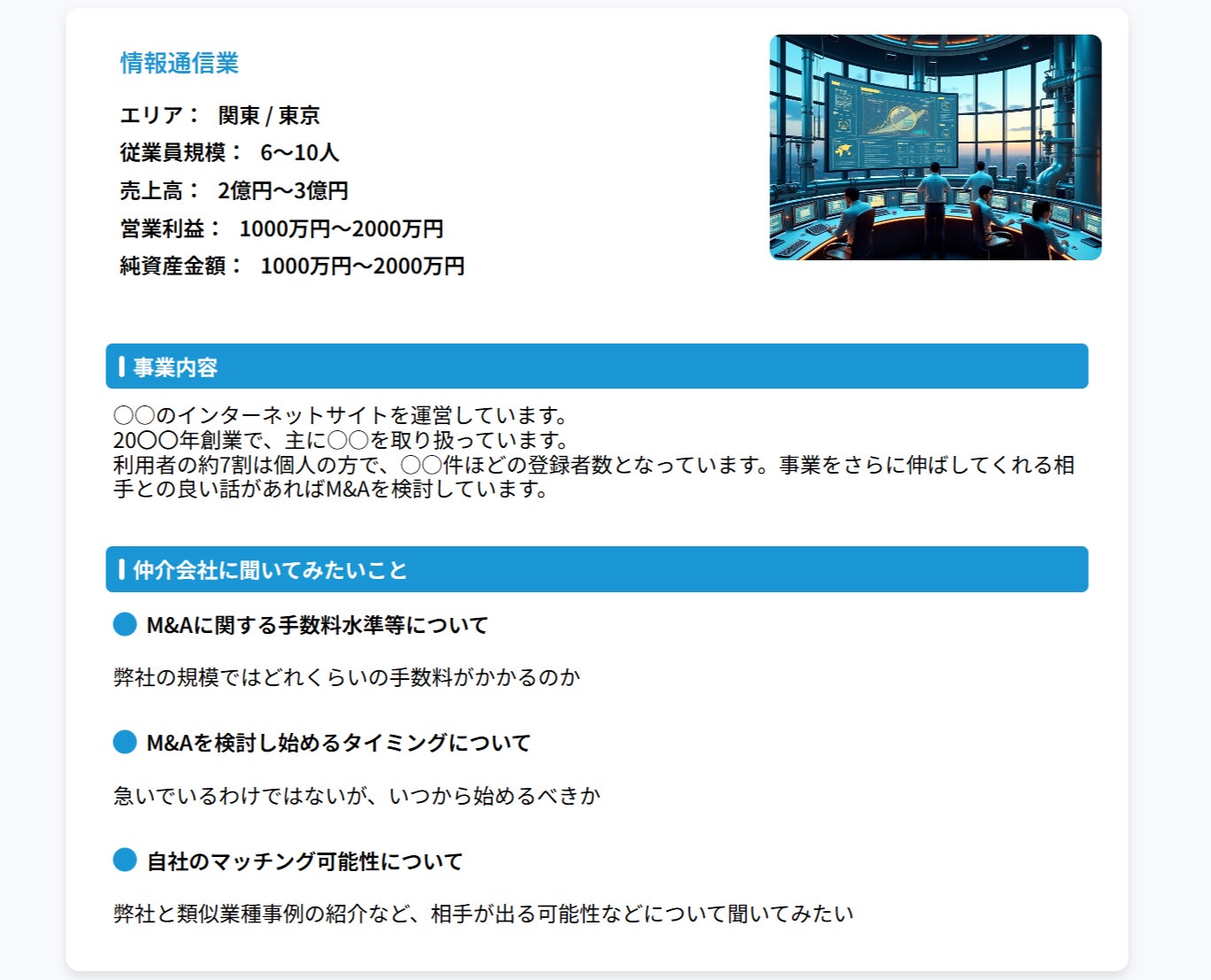 ※M&A仲介会社様のご登録には、所定の審査がございます。詳しくは詳細をご覧ください。