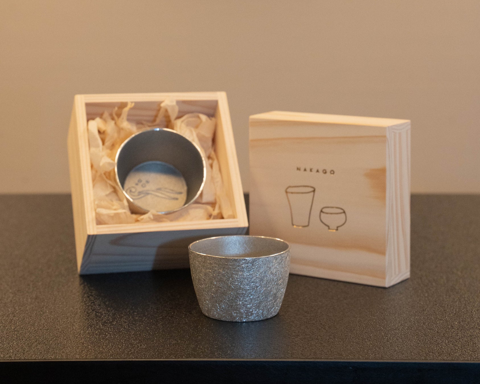 銀波荘の思い出と70周年の感謝を込めた、独自の手法で生み出される表面のきらめきや、錫ならではのまろやかな口当たりをご体験ください。