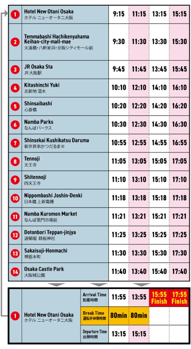 運行エリア:大阪市内主要観光地(14カ所)