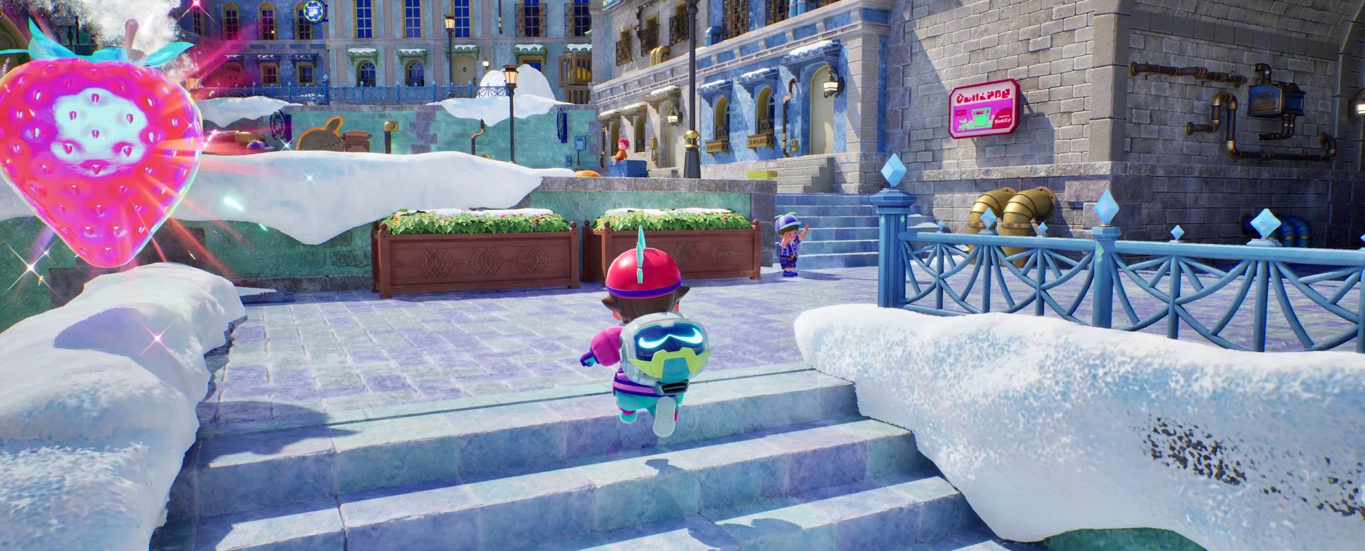 『フルーティモ!』はフルーツが大好きな少年「ビミタ」と、バックパック型アンドロイドの「じいちゃん」が、大きなフルーツを集めるアクションアドベンチャーです。