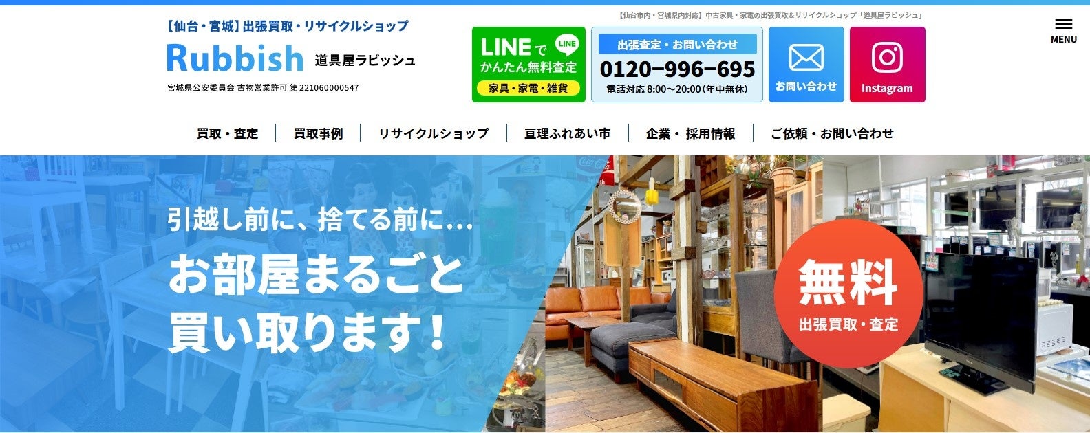 亘理ふれあい市にも随時出店している地域密着型の買取店です。出張買取は無料で対応しており、その他、店舗での持ち込み買取にも対応。LINEを使った無料査定も行っているため、事前に買取価格を知りたい方にもおすすめです。