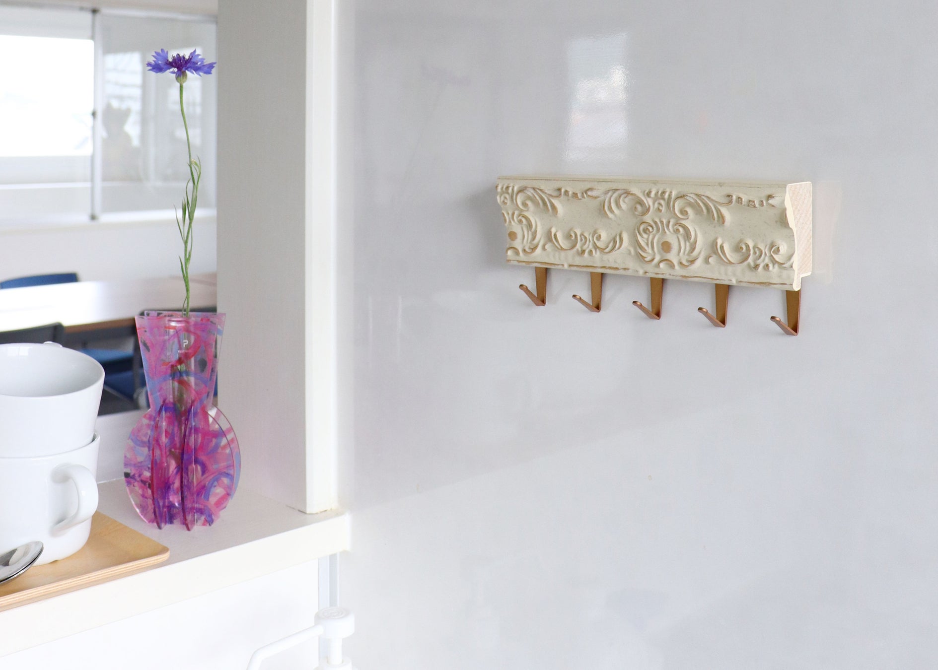 そう考えて生まれたのが、額縁ならではの装飾性を活かしたキーフックです。