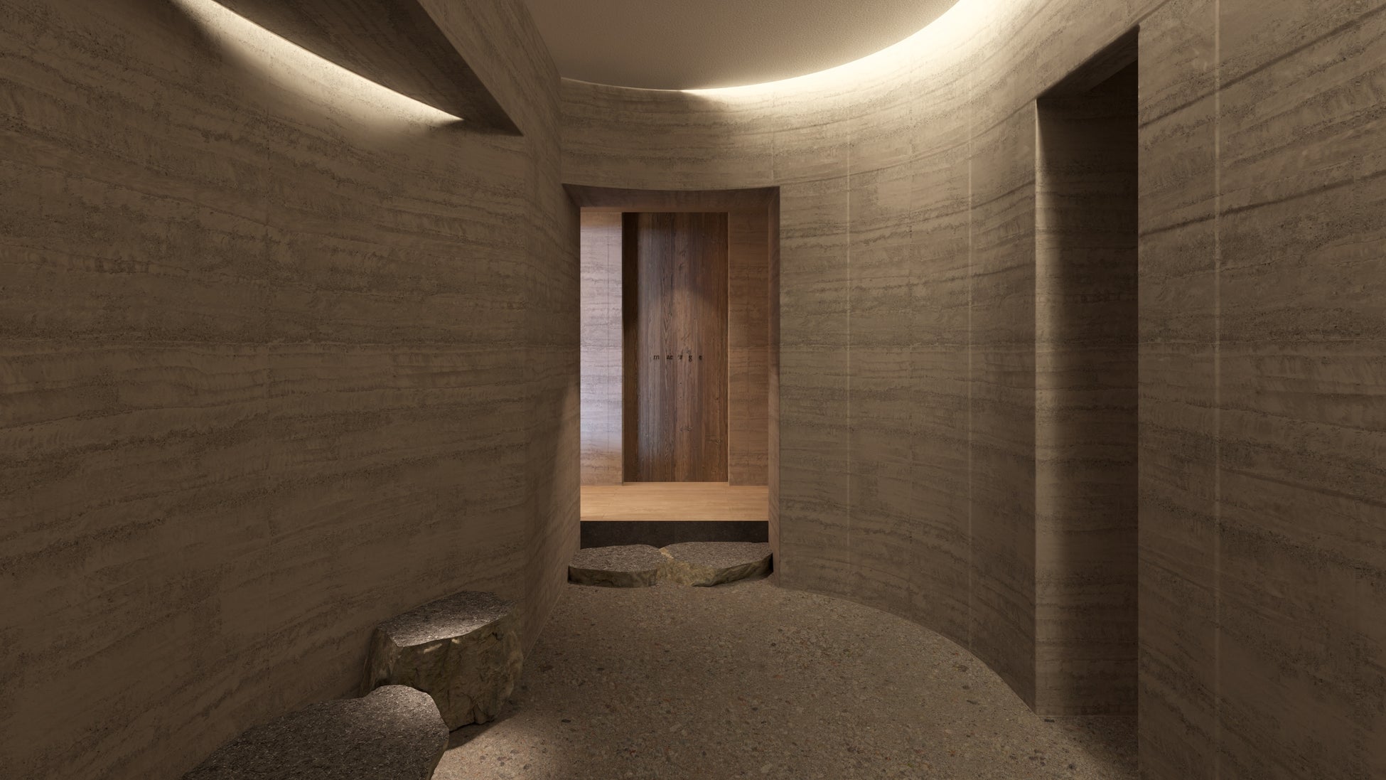 古代中国の自然哲学〈五行〉をコンセプトに据えた空間では、壁・床・家具に四角や円の規則的な模様をあえて用いず、“完結しない美” をそのまま残しました。左官職人・久住有生(くすみ なおき)が手掛けた壁や、地中に約五百年眠っていた神代欅を用いた家具などが静かに佇みます。余白が生む自然のゆらぎの中で、心をほどき、食と向き合う時間をお楽しみください。