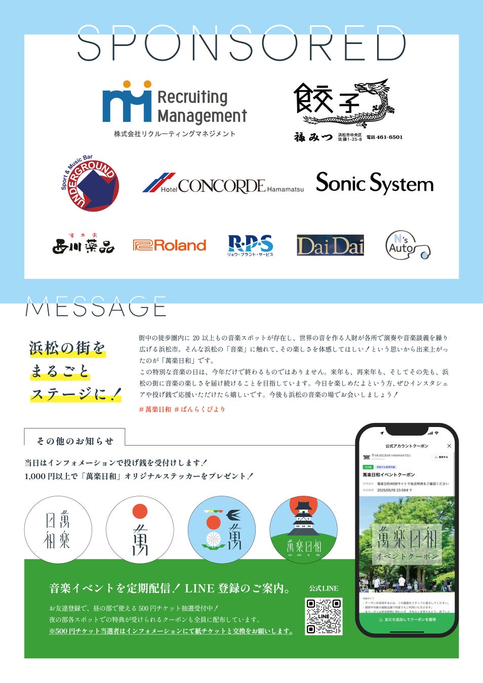 静岡県浜松市内各所にて音楽イベントを企画している「MUSICBAR HAMAMATSU」は、2025年5月17日(土)浜松の音楽に没頭する1dayイベント「萬楽日和(ばんらくびより)」を開催いたします。