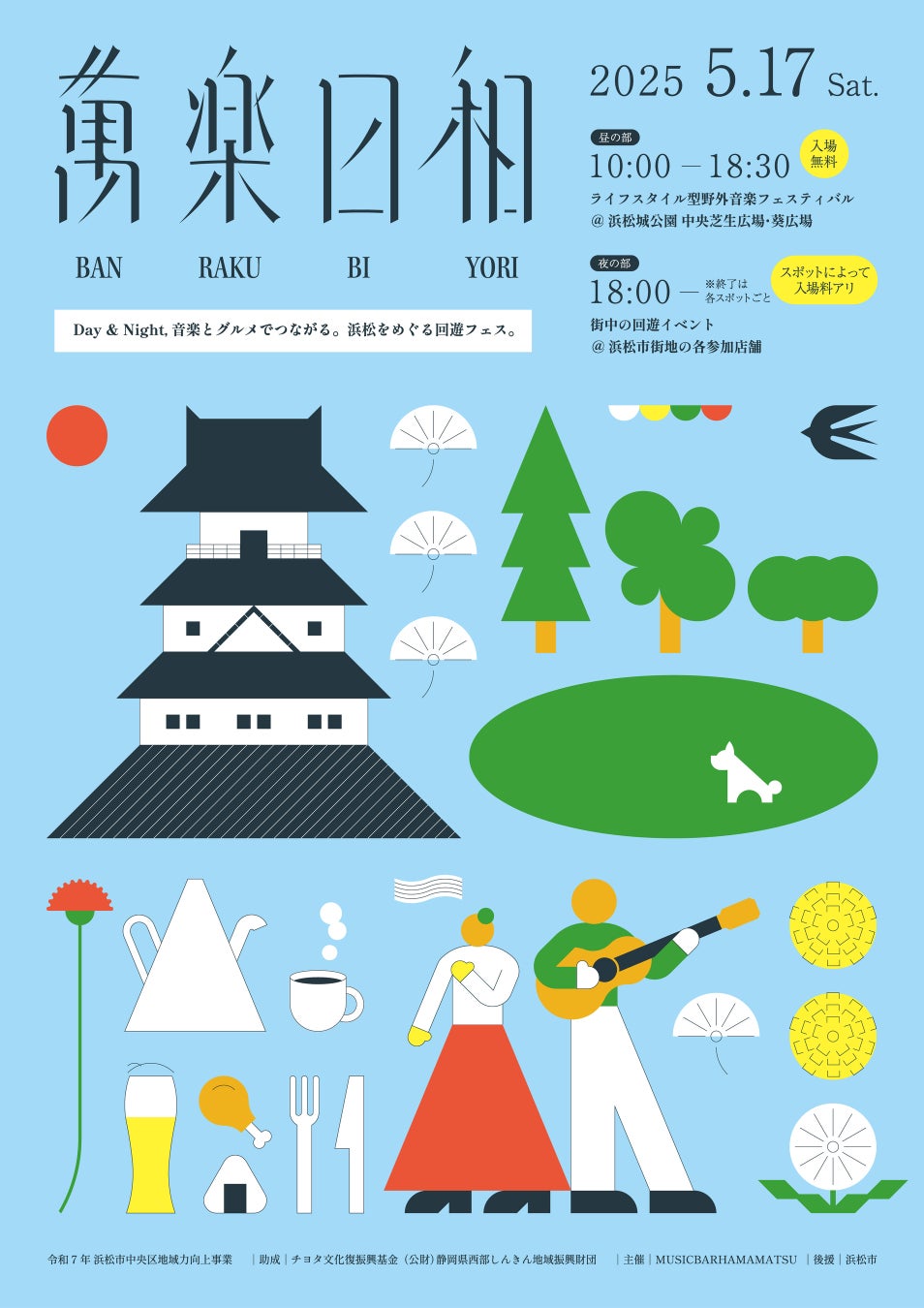 昼の部は新緑に囲まれた浜松城公園で開催される入場無料の野外音楽フェスティバル。
