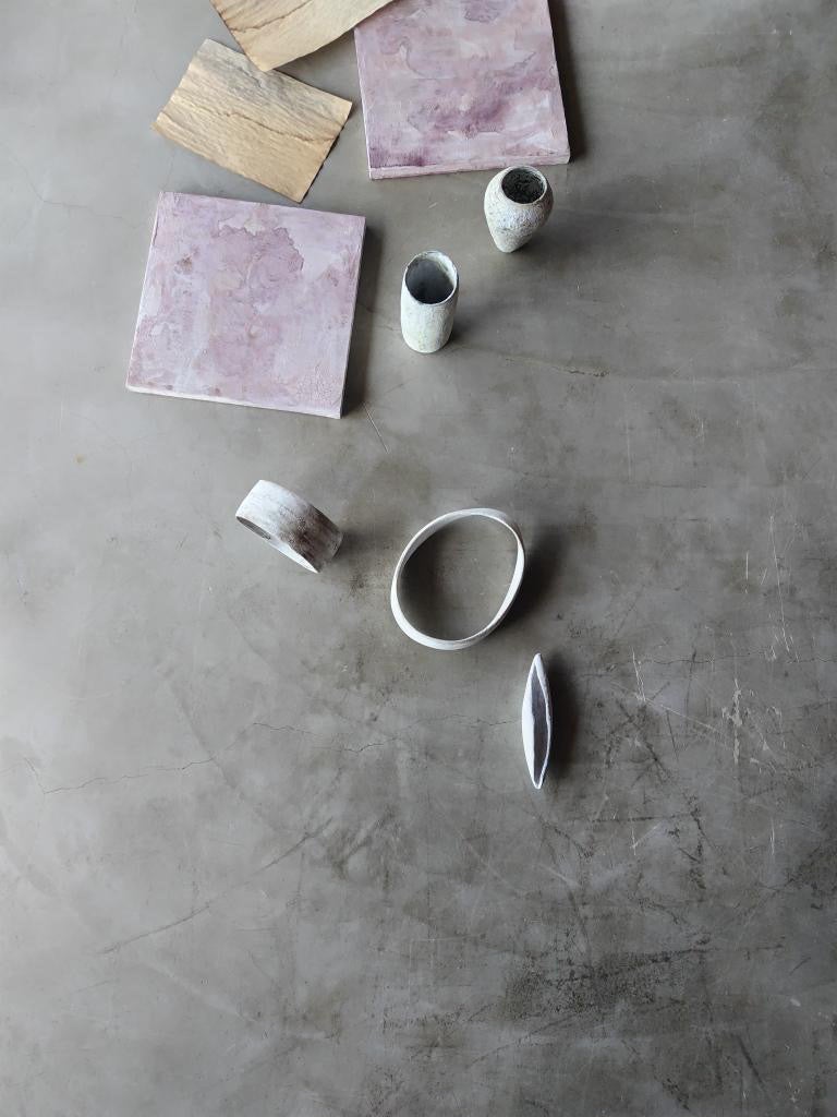 土の質感やゆらぎを大切に、抽象的なオブジェを制作。