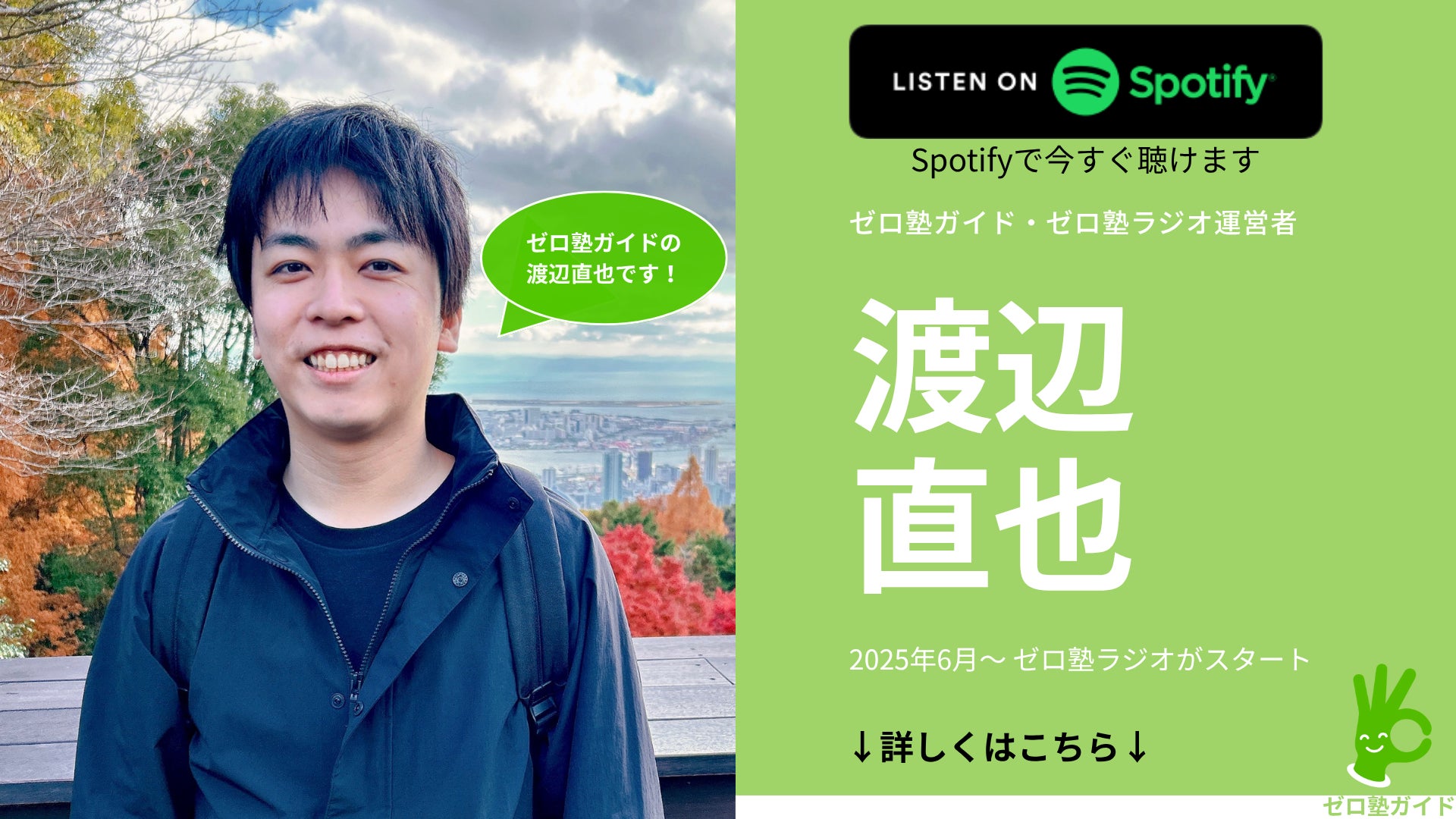 「ゼロ塾ラジオ」では、塾選び、受験対策、教育業界のリアル、SEO、マーケティング、地域広報など、さまざまな教育テーマについて、渡辺なおやがわかりやすく解説しています。