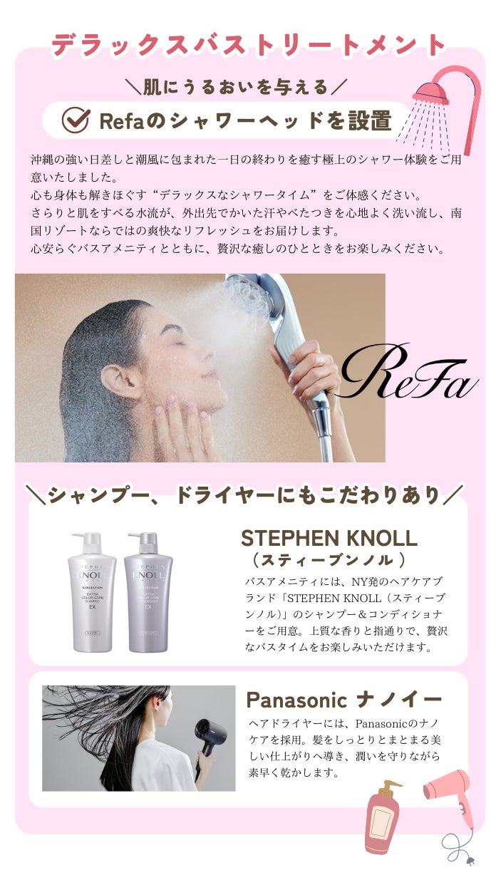 沖縄の強い日差しと潮風に包まれた一日の終わりを癒す極上のシャワー体験をご用意いたしました。