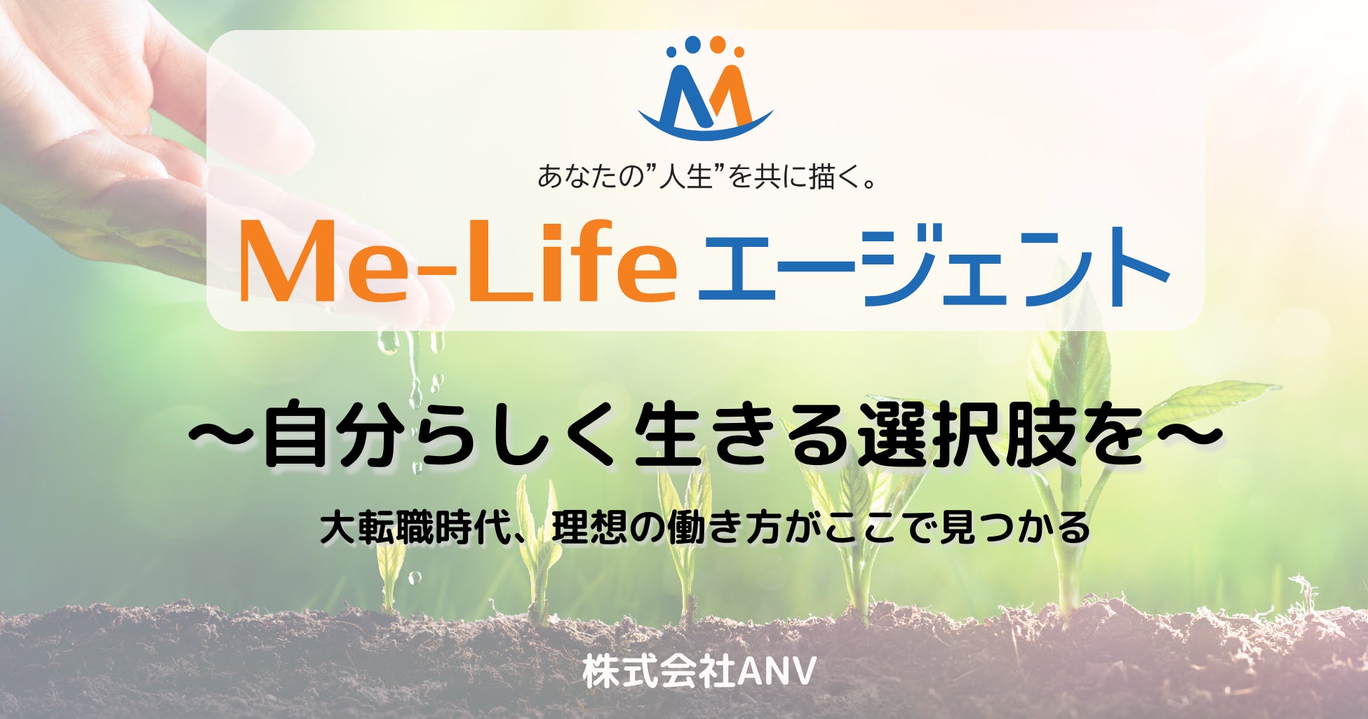 株式会社ANV(所在地:東京都渋谷区/代表取締役:山下 隼輝)は、人材紹介サービス『Me-Life(ミーライフ) エージェント』の提供を開始します。