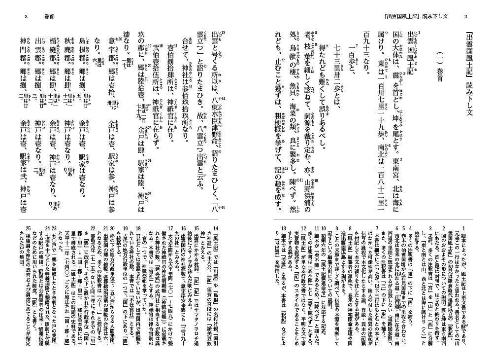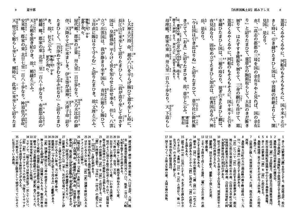 736頁に及ぶ専門書『出雲国風土記‐校訂・注釈編‐』をもとに、読み下し文とその注釈を分かりやすく再構成。