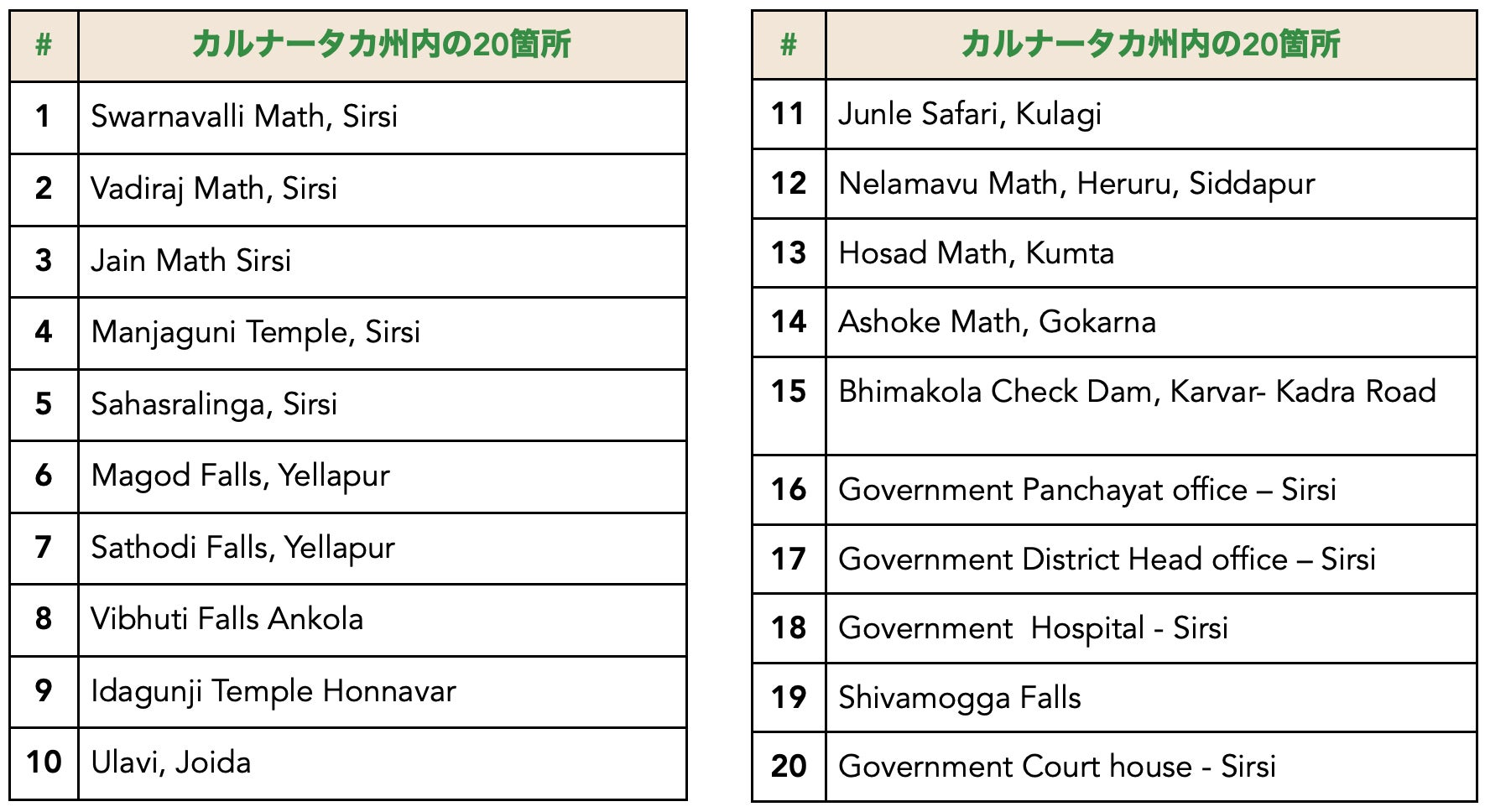 • 展開エリア: 南インド、カルナータカ州内の20箇所