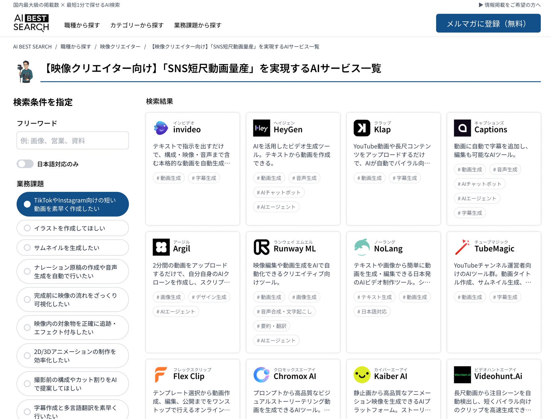 AIツール検索プラットフォーム「AI BEST SEARCH」