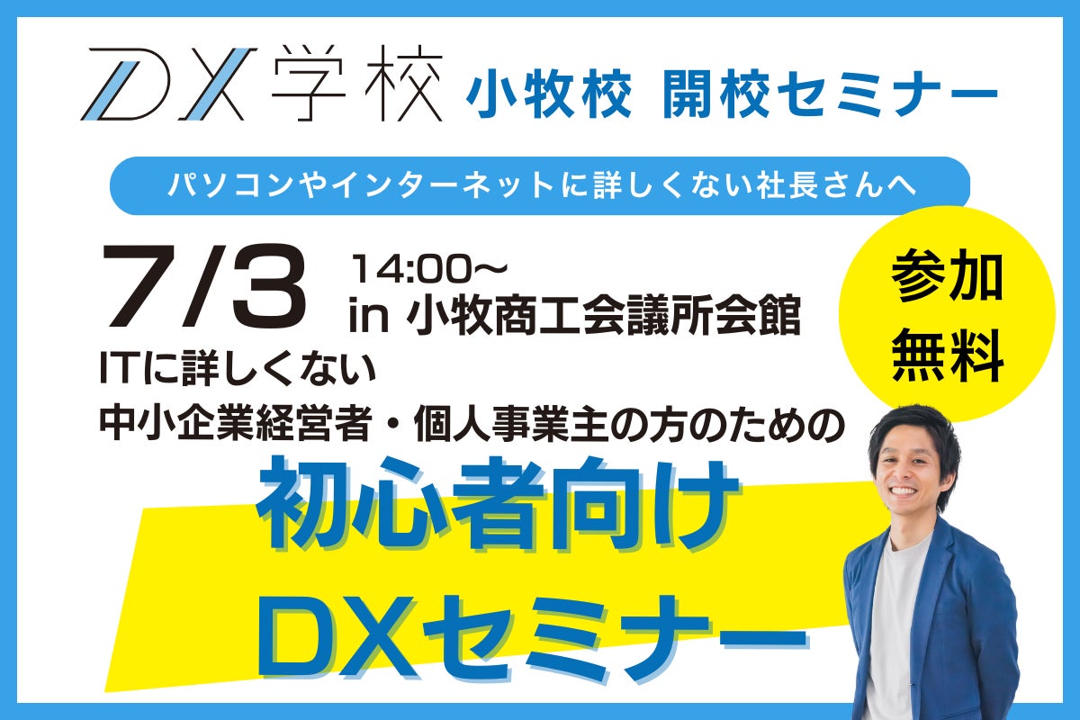 全国で中小企業のDX化を推進する「DX学校」は、この度、愛知県小牧市に「DX学校 小牧校」を2025年7月3日(木)に開校いたします。IT化の遅れに不安を感じる小牧市の中小企業を活性化するため、開校記念として同日、参加無料の『初心者向けDXセミナー』を小牧商工会議所会館で開催します。