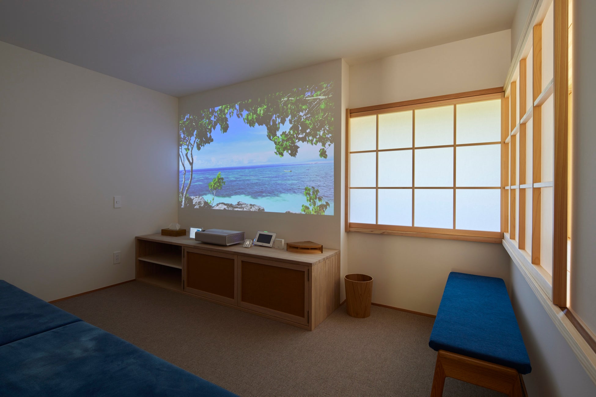 「島韻~toinn~」は、環境省からネット・ゼロ・エネルギー・ビル(ZEB)認証を受けた建物です。生活に必要な電気や水などのエネルギーをパッシブ技術で削減し、さらにアクティブ技術によってエネルギーを効率的に使うことで省エネを実現。太陽光発電などでエネルギーを創り出し、エネルギー自給自足が可能なZEBを達成しました。飲料水も井戸水から確保できるため、エネルギーと水の自給自足の暮らしを体験できます。