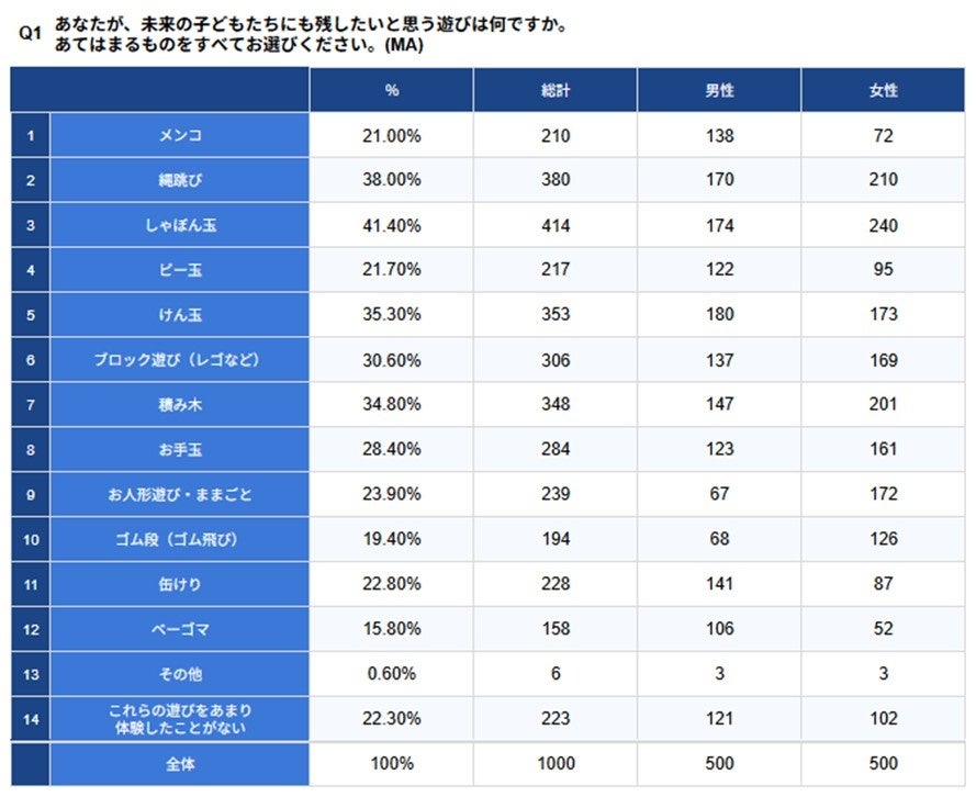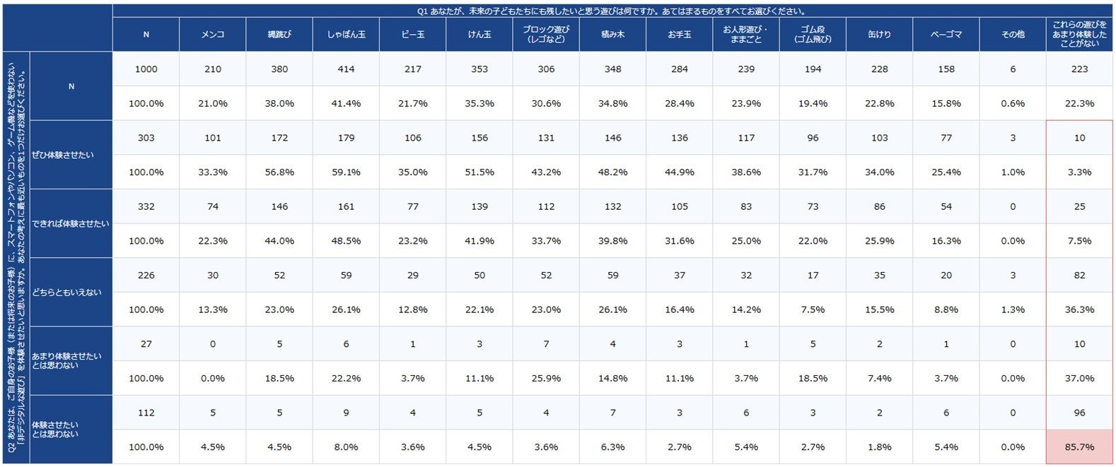Q1: 未来の子どもたちにも残したいと思う遊び