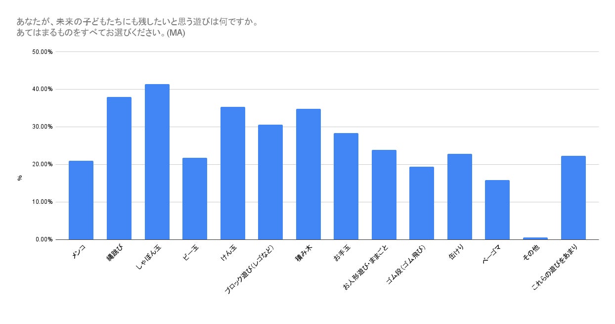 あなたが、未来の子どもたちにも残したいと思う遊びは何ですか。あてはまるものをすべてお選びください。