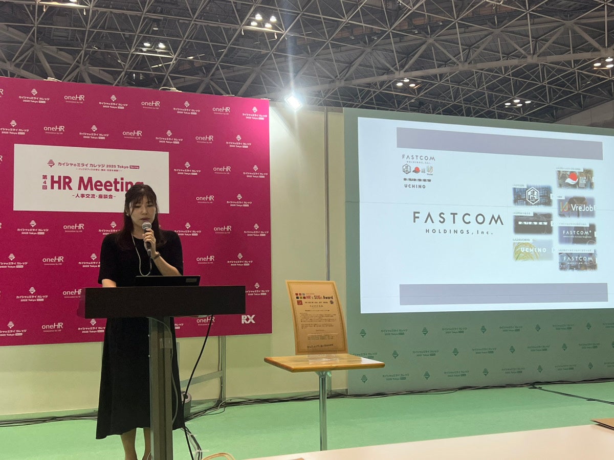 株式会社ファストコムホールディングス(代表取締役:小林 栄治、本社:東京都中央 区、以下ファストコム)は、One HRが主催する「HR’s SDGsアワード2025」の「働く責任 働く自由」部門にて優秀賞を受賞し、2025年6月27日に東京ビッグサイト で行われたHR EXPOにて受賞者ピッチ・授賞式に登壇しました。