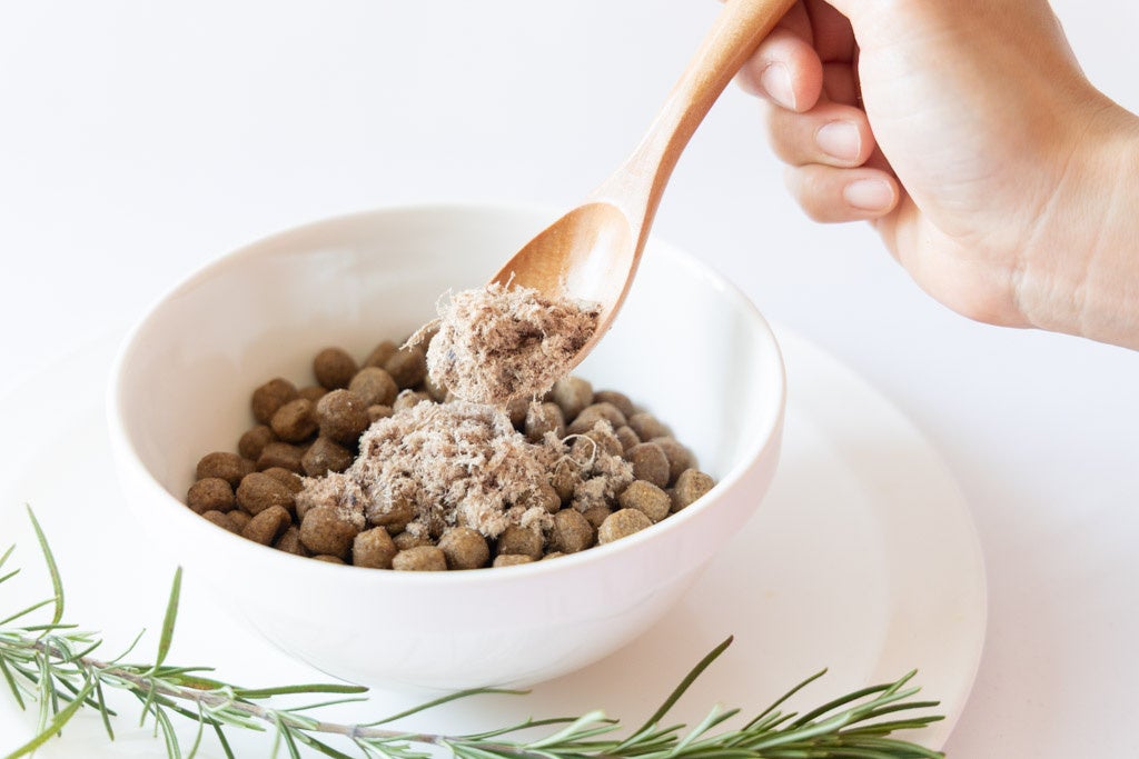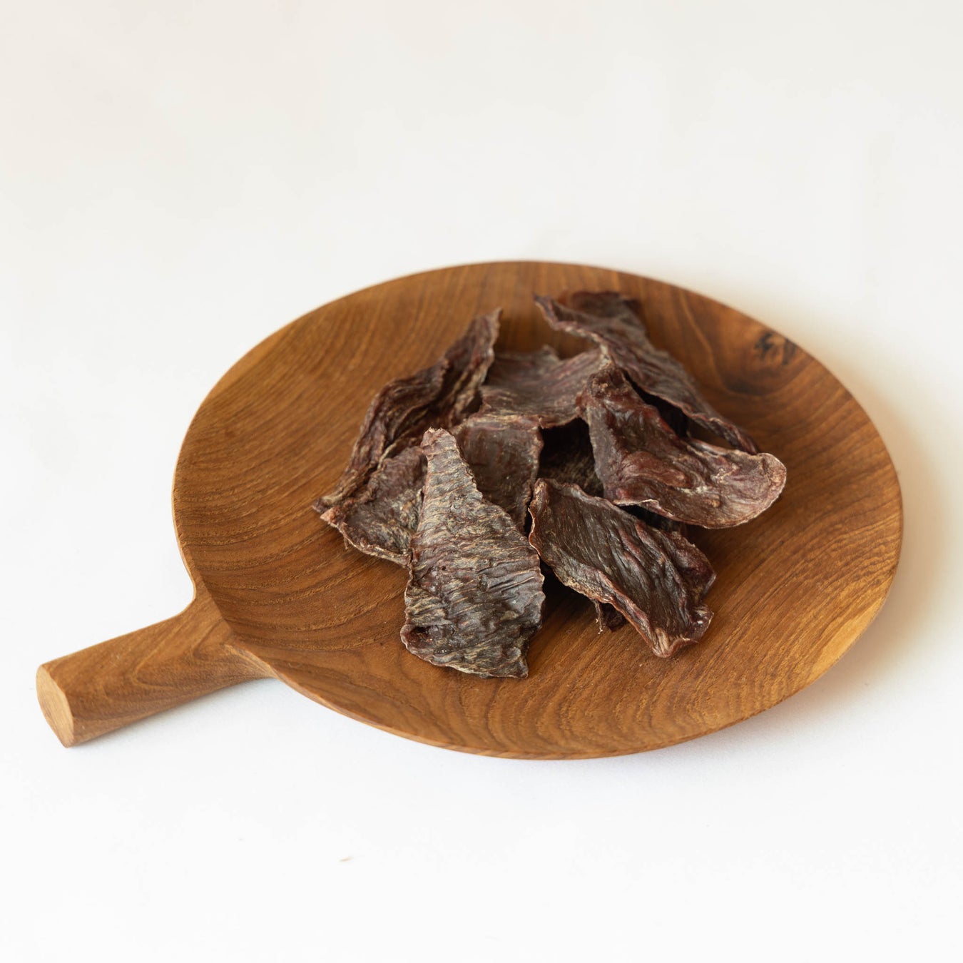 手作業で脂や筋を取り除き、乾燥や加熱の温度管理にも細心の注意を払うことで、自然なままでも美味しく安全なおやつを実現。