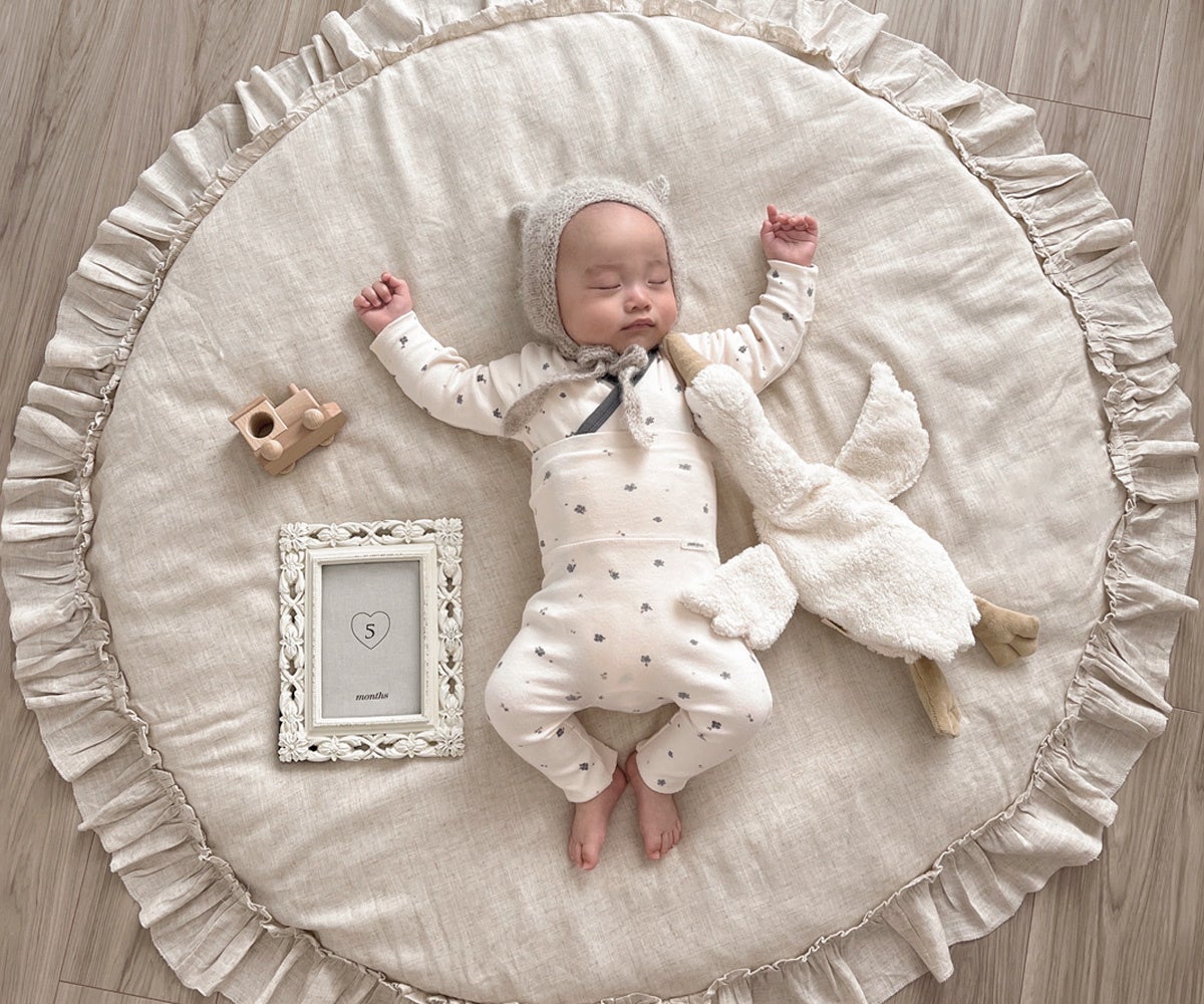 赤ちゃんの肌にも安心な、天然由来のレーヨンとリネンを使用。通気性・吸湿性にも優れ、洗うほどに風合いが増していきます。