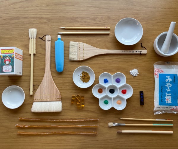 日本画の画材や道具である和紙、岩絵具、膠(にかわ)、筆、刷毛などは、自然素材から職人の手仕事によって作られ、千年以上にわたり受け継がれてきました。