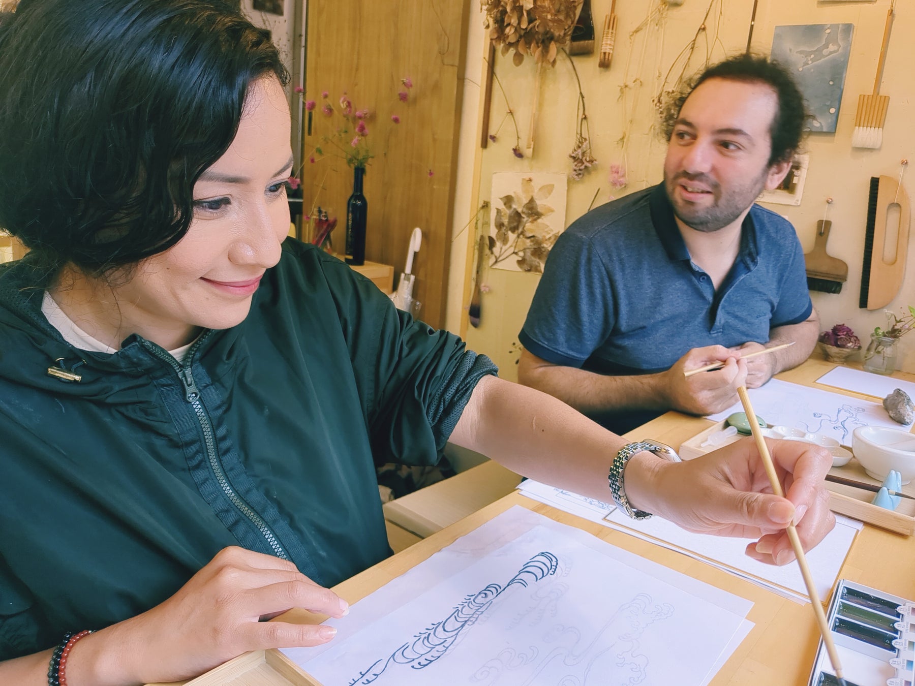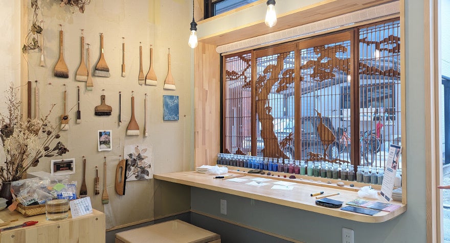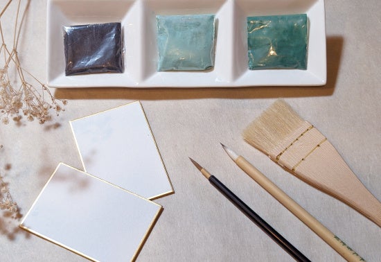 少人数・完全予約制のプライベートな空間で、本物の画材に直に触れながら日本画の作品づくりをお楽しみいただけます。ご予約・お問い合わせは公式HPより受け付けております。